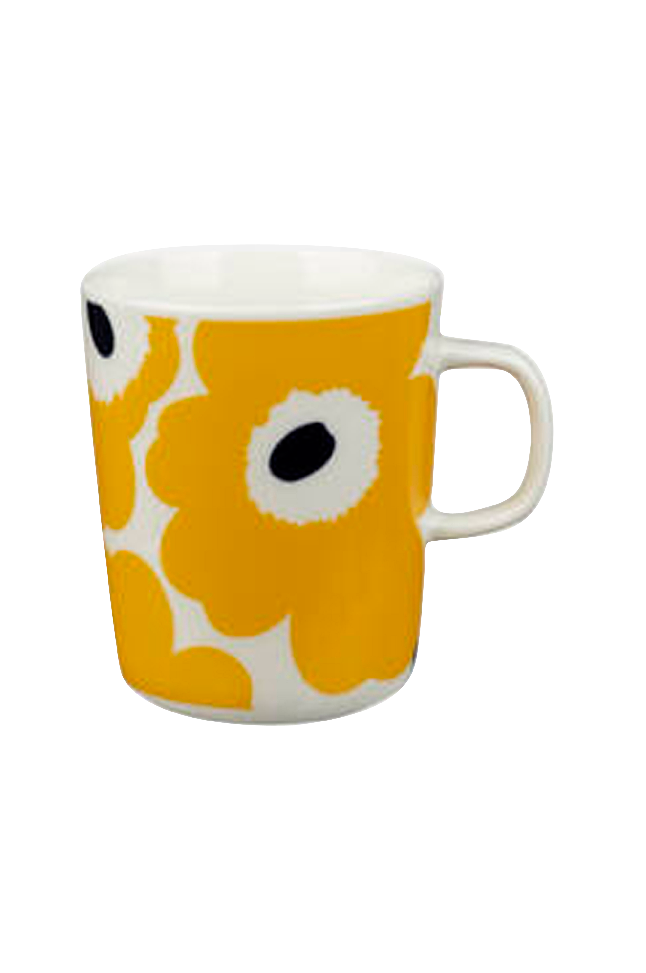 Muki on valkoista kivitavaraa, joka kestää konepesun, kuumennuksen uunissa ja mikroaaltouunissa sekä pakastuksen. Poista tuotteen pohjassa oleva tarra ennen käyttöä. Tarra sisältää pienen määrän metallia. Marimekon kuuluisa Unikko-kuosi syntyi vuonna 1964, jolloin designtalon mallistot sisälsivät pääosin abstrakteja printtejä. Muotoilija Maija Isola halusi luoda tästä teemasta jotakin uudenlaista ja kiinnostavaa, ja suunnitteli kokonaisen sarjan vahvoja kukkakuoseja. Nykyään ikoninen kukkakuvio symbolisoi luovuutta.