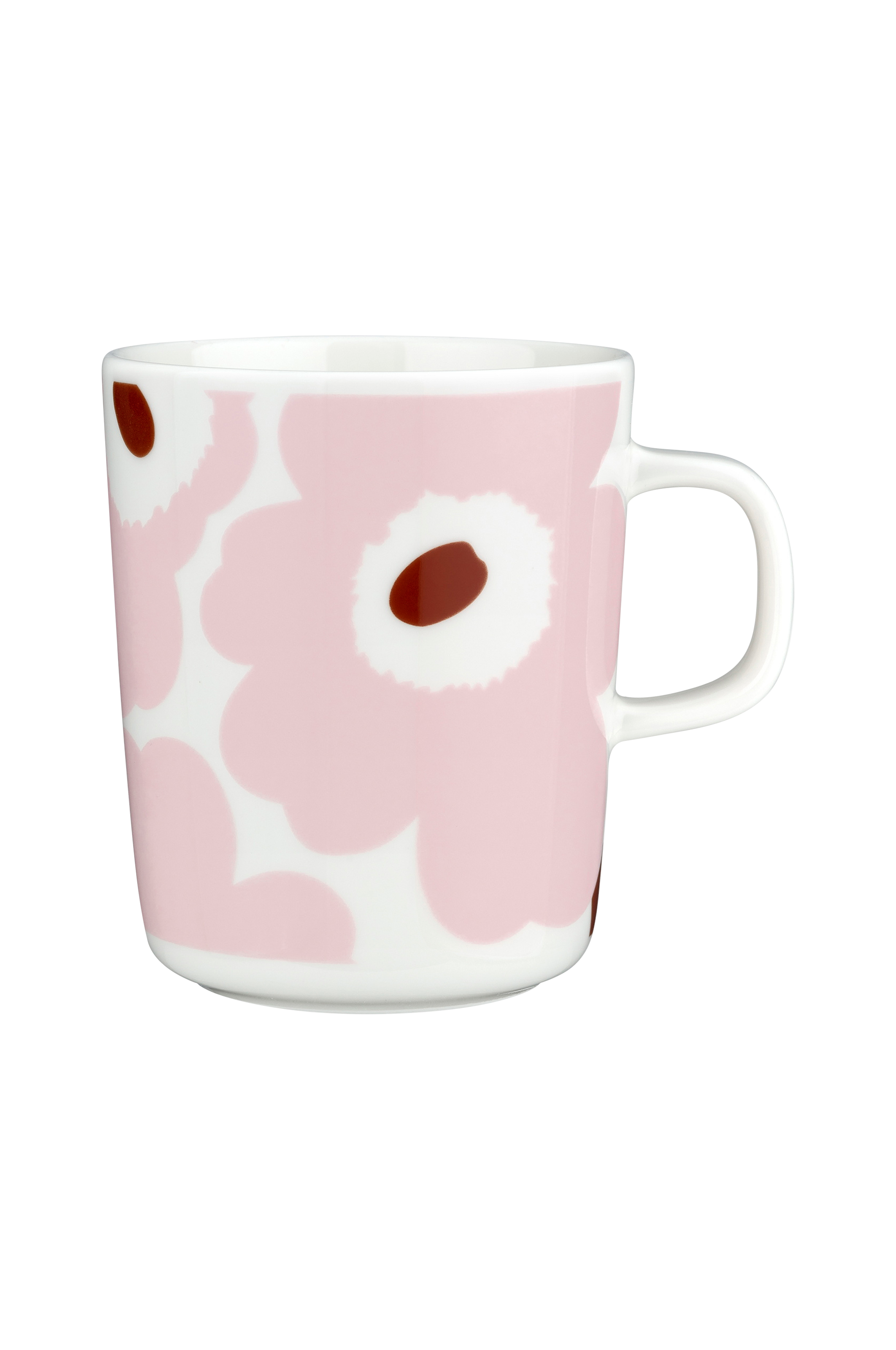 Oiva-muki on valmistettu valkoisesta kivitavarasta, joka on astianpesukoneen, uunin, mikroaaltouunin ja pakastimen kestävä. Poista tarra tuotteen pohjasta ennen käyttöä. Tarra sisältää pienen määrän metallia. Unikko, luovuutta symboloiva, syntyi aikana, jolloin Marimekon mallistoissa ei juuri ollut kukkakuvioita. Maija Isola kuitenkin innostui kukkateemasta ja päätti luoda kokonaisen valikoiman uudenlaisia kukkakuvioita.