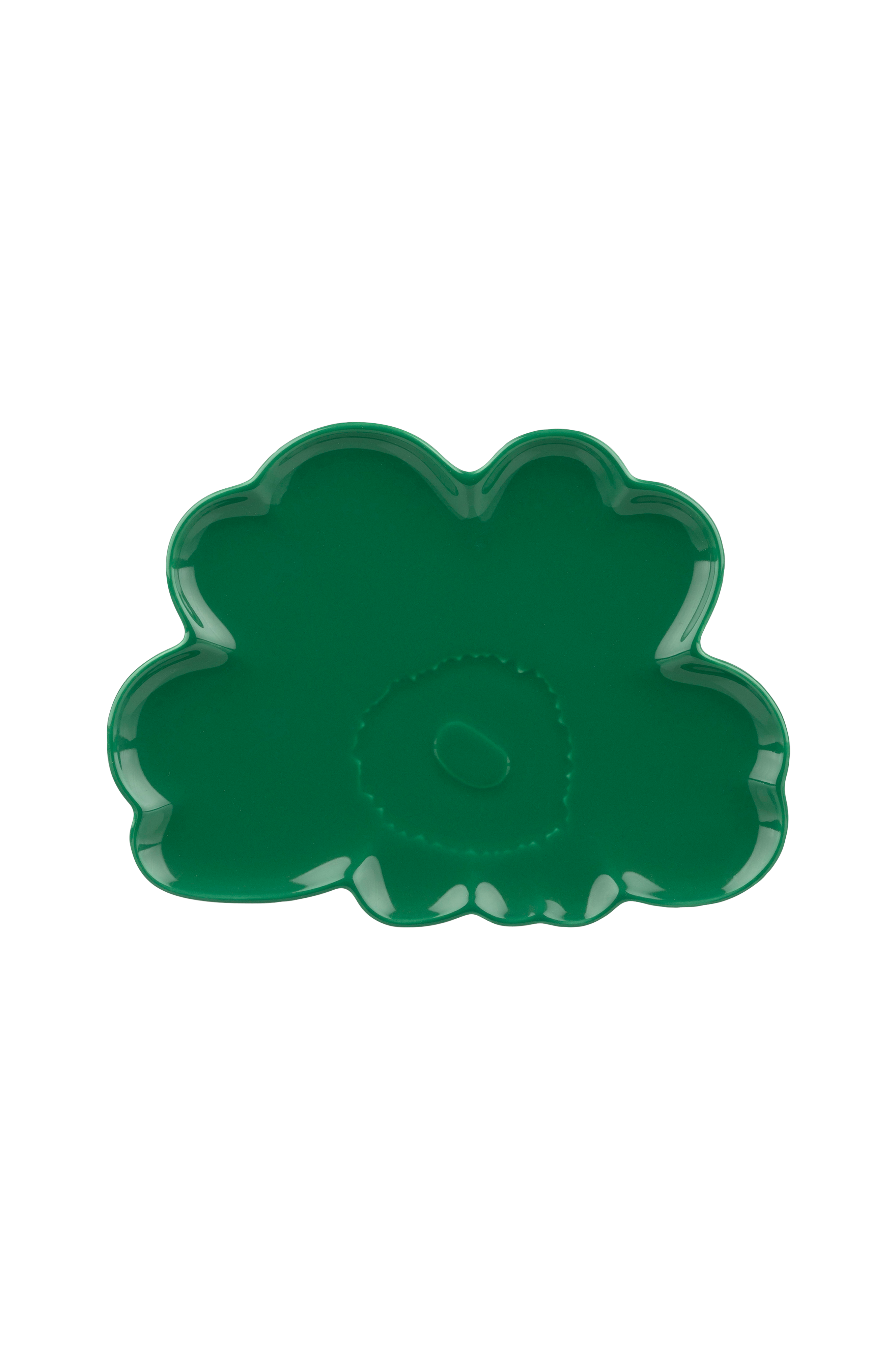 Unikko kukkien muotoinen lautanen on valmistettu keramiikasta, jossa on vihreä lasite. Suosittelemme lautasen pesemistä käsin. Vaikka sen voi pestä koneessa, ainutlaatuinen muotoilu saattaa vahingoittua, jos se joutuu kosketuksiin muiden astioiden kanssa. Tuote on pakattu Marimekko Logo -kuvioiseen laatikkoon. 20 cm. Käsinpesu