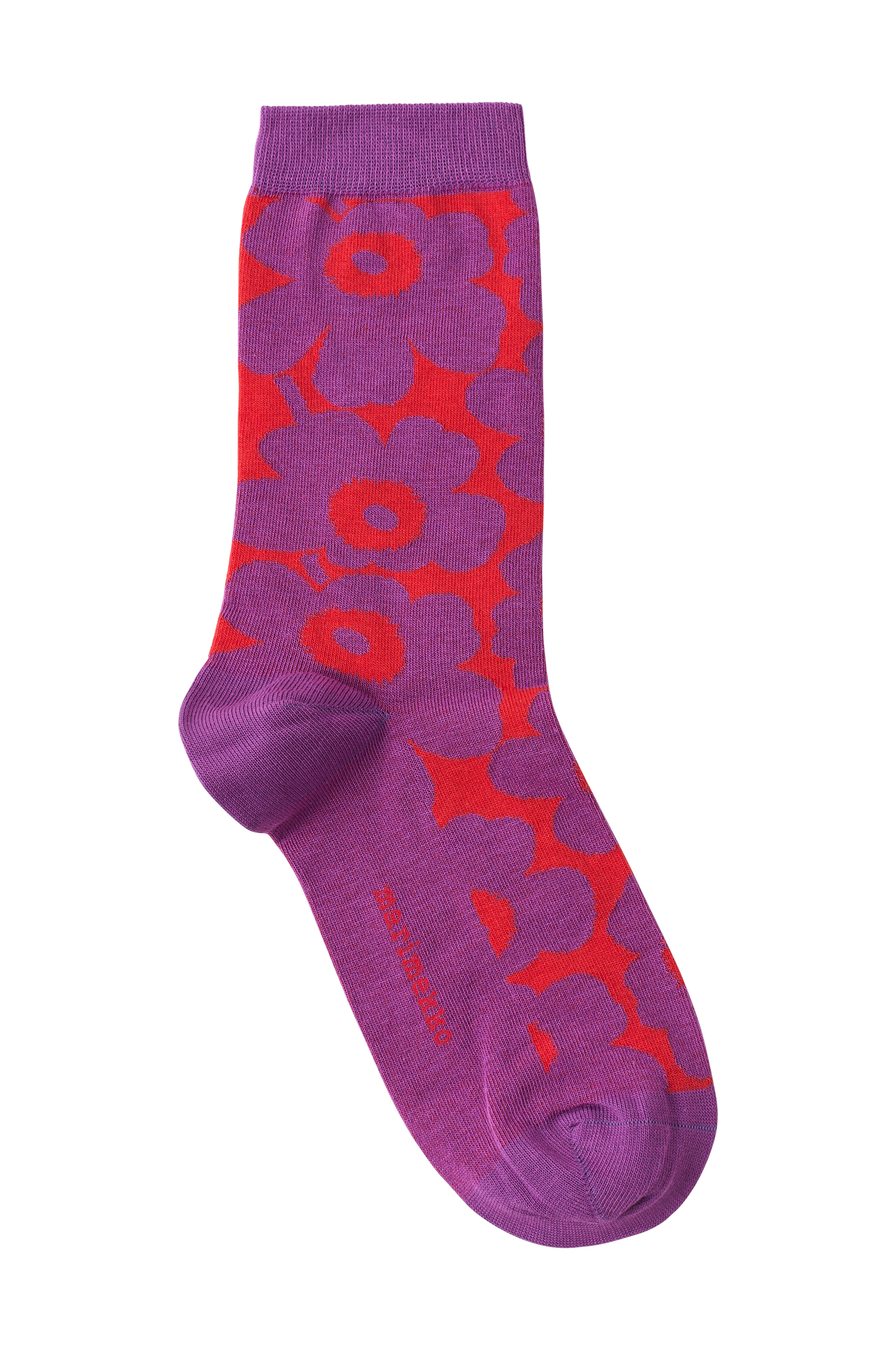 Linjaus -nilkkasukat on valmistettu puuvillasekoitteesta, ja niissä on Unikko -kuvio.