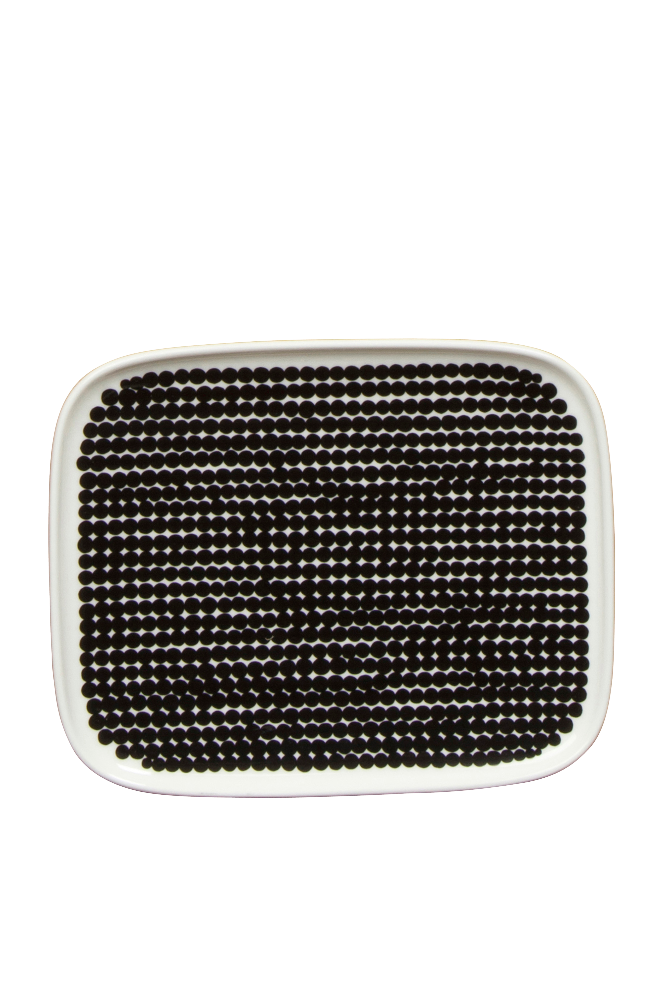 Pieni kulmikas Oiva-keramiikkalautanen on valmistettu valkoisesta kivitavarasta, ja sitä koristaa Räsymatto-kuosi. Se kestää konepesun, mikrouunin ja pakastuksen. Lasitetut värit ja kuvio säilyvät kirkkaina.