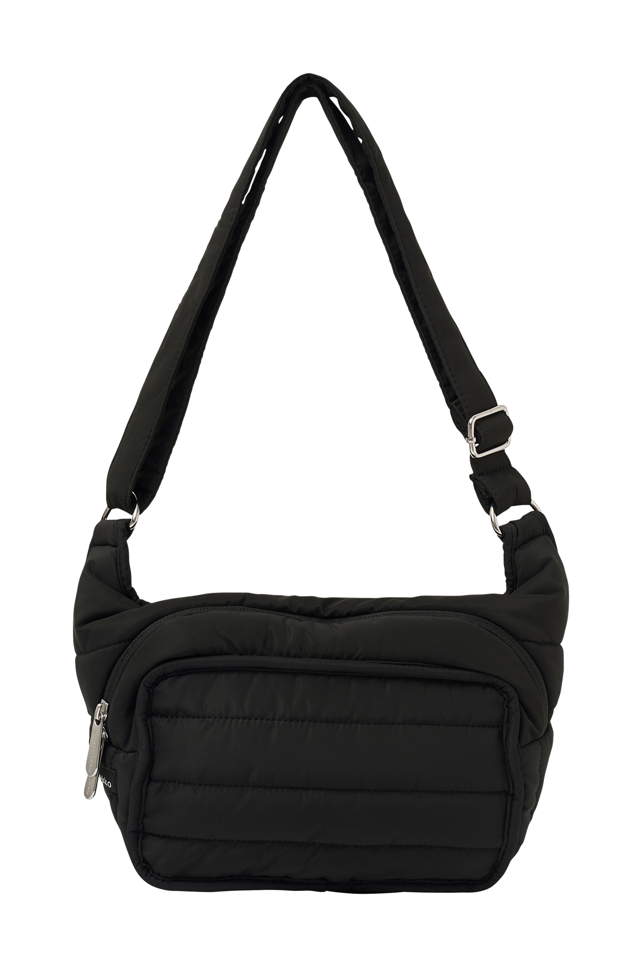 Tikattu ja topattu laukku, jossa säädettävä olkahihna. Vetoketjulokero ja kaksi slip in -lokeroa sisäpuolella. Painonapillinen tasku ulkopuolella.Mitat n. L27 x K17 x S8 cm.