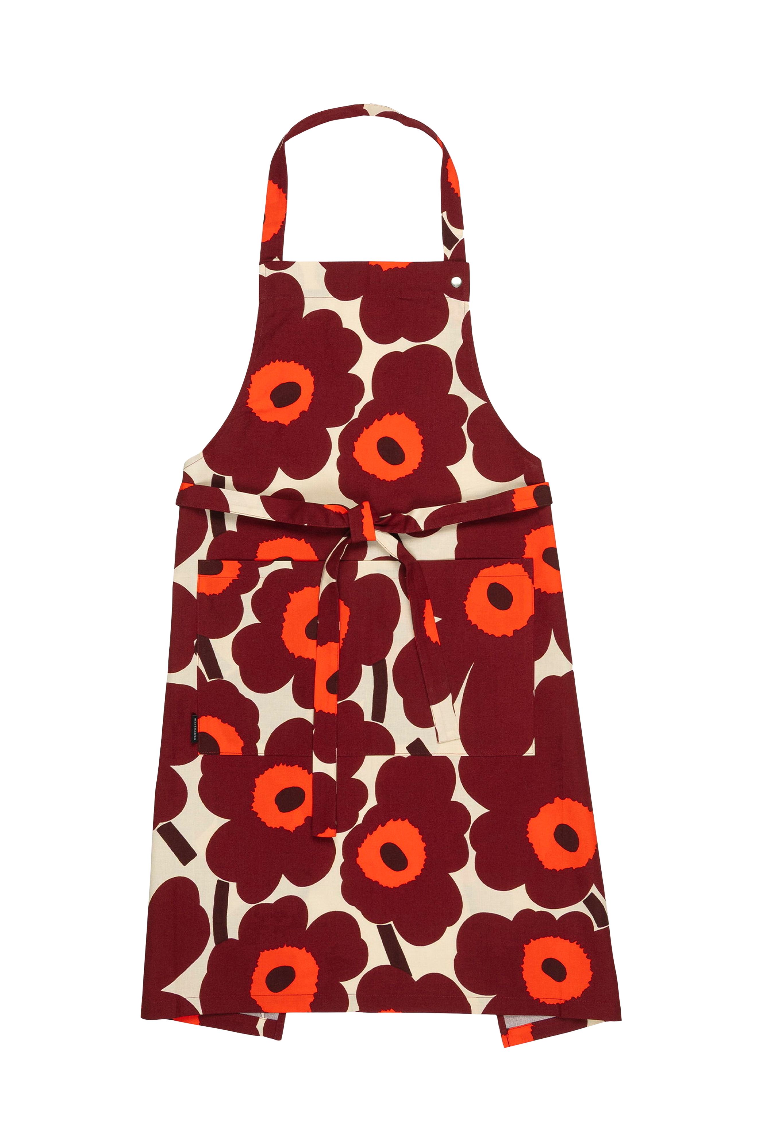 Puuvillaisessa esiliinassa on yksi etutasku, säädettävä kaulanauha ja vyötäröllä nauhat, jotka voidaan sitoa yhteen takana. Esiliinassa on Pieni Unikko kuvio, joka on painettu Helsingissä. Tuotteessa käytetty puuvilla on luomupuuvillaa.