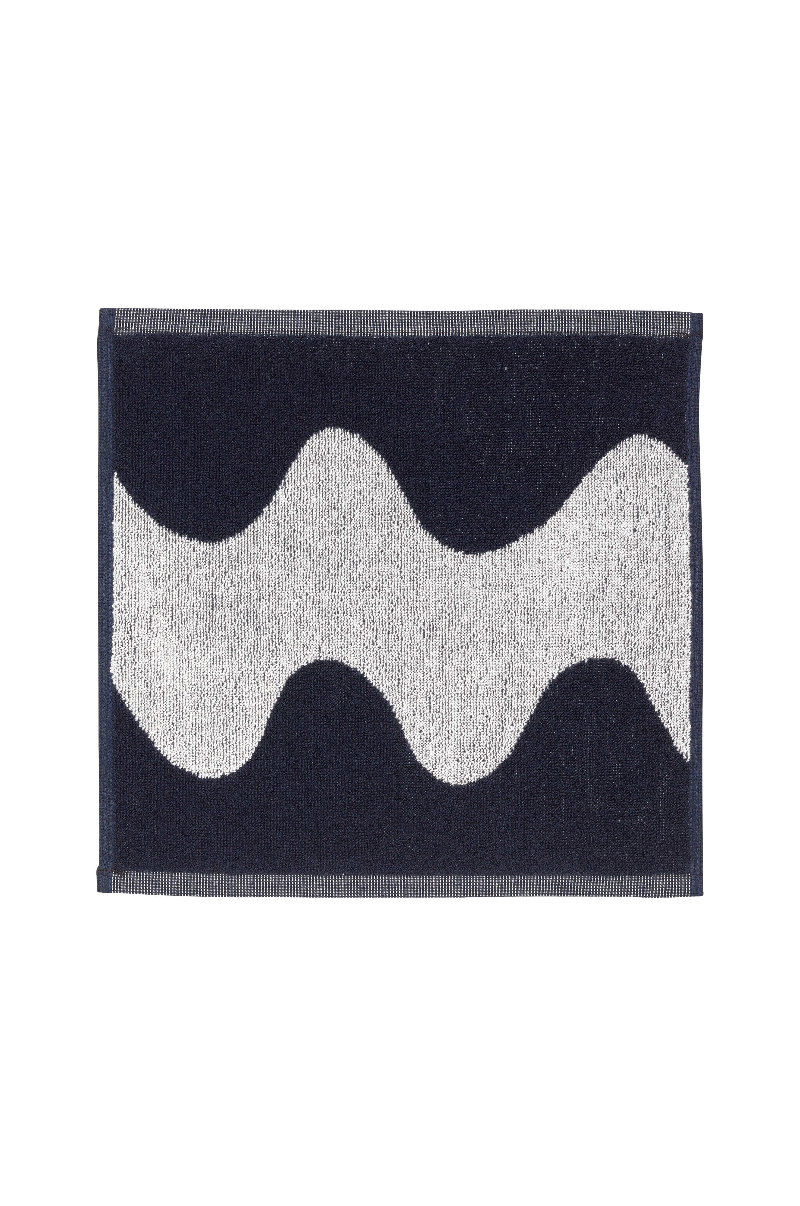 LOKKI-pikkupyyhe 100% puuvillaa. Idea Lokki-malliin syntyi Maija Isolan katsellessa pieniruutuista ikkunaa, jonka eteen oli vedetty verho. Aurinko paistoi ja leveillä poimuilla olevaan verhoon muodostui aaltomaisia varjoja. Maija sai ahaa-elämyksen: jos kankaaseen painetaan aallot valmiiksi, vähäkin kangas näyttää runsaalta ja poimutetulta.