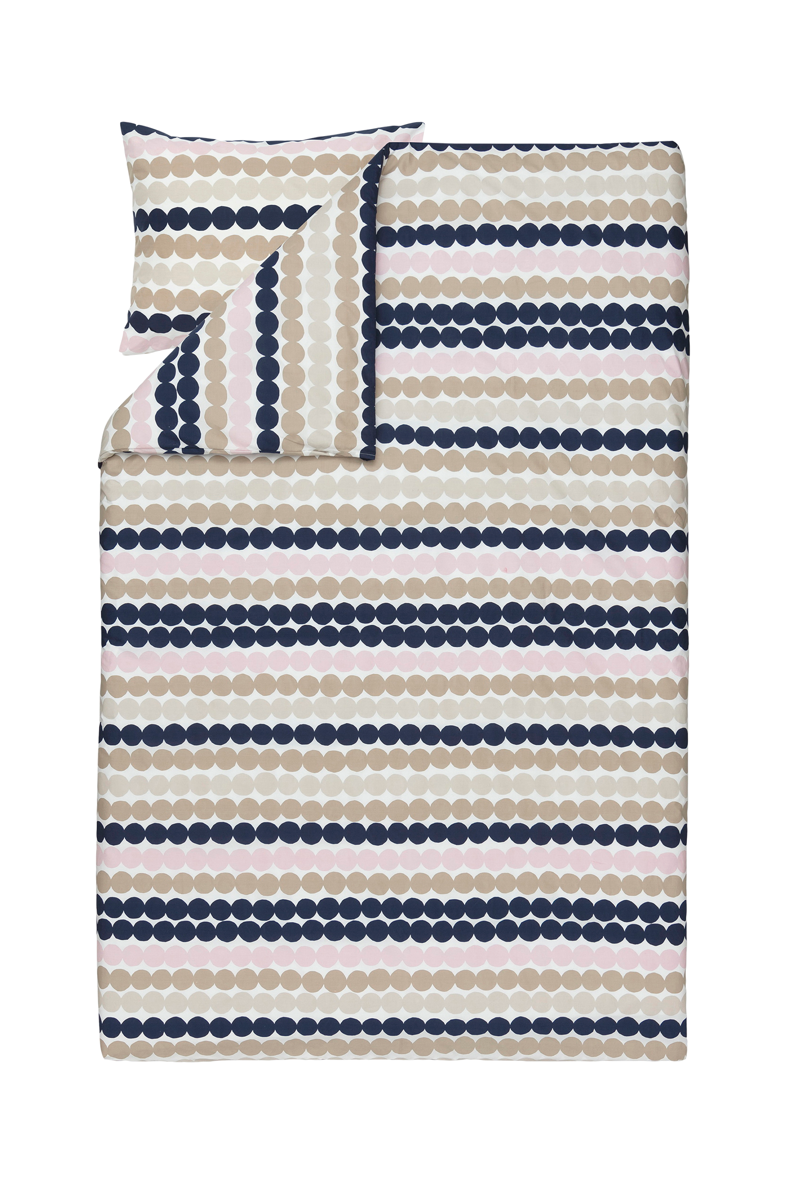 Tässä puuvillaisessa pussilakanasettisarjassa on Räsymatto -kuvio. Settiin kuuluu pussilakana, jonka koko on 150x210 cm, ja tyynyliina, jonka koko on 50x60 cm. Pussilakanoissa on yläkulmissa käsiaukot, jotka helpottavat peitteiden vaihtoa. Säikeiden määrä: 200 Tc