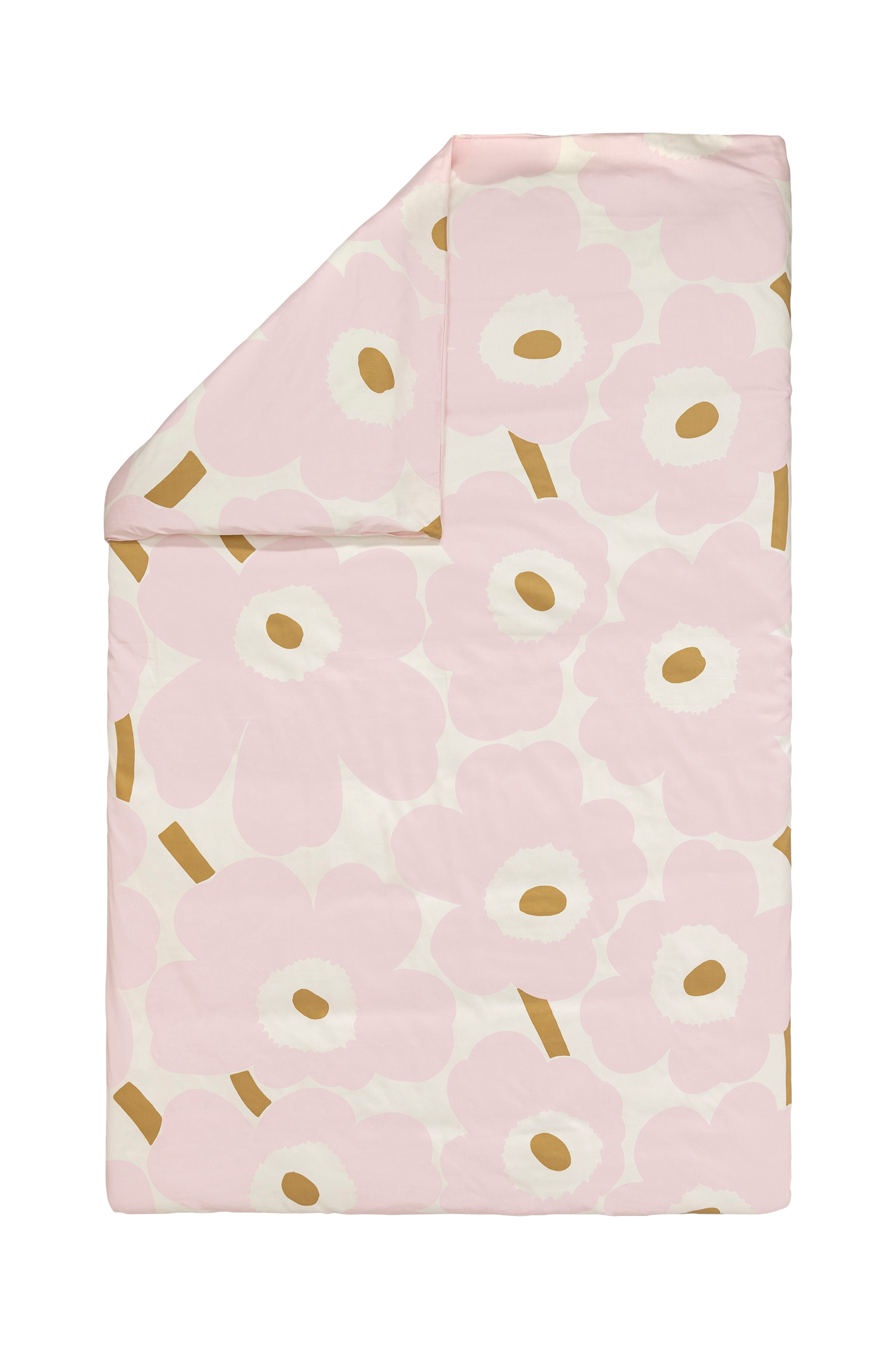 Tämä Unikko -kuvioitu setti on valmistettu 220 Tc luomupuuvillasatiinista, ja se sisältää 150 x 210 cm:n pussilakanan ja 50 x 60 cm:n tyynyliinan. Yläkulmissa olevat käsiaukot helpottavat peiton vaihtamista. Setti on pakattu pussiin, joka on valmistettu samasta kankaasta kuin tuotteet.
