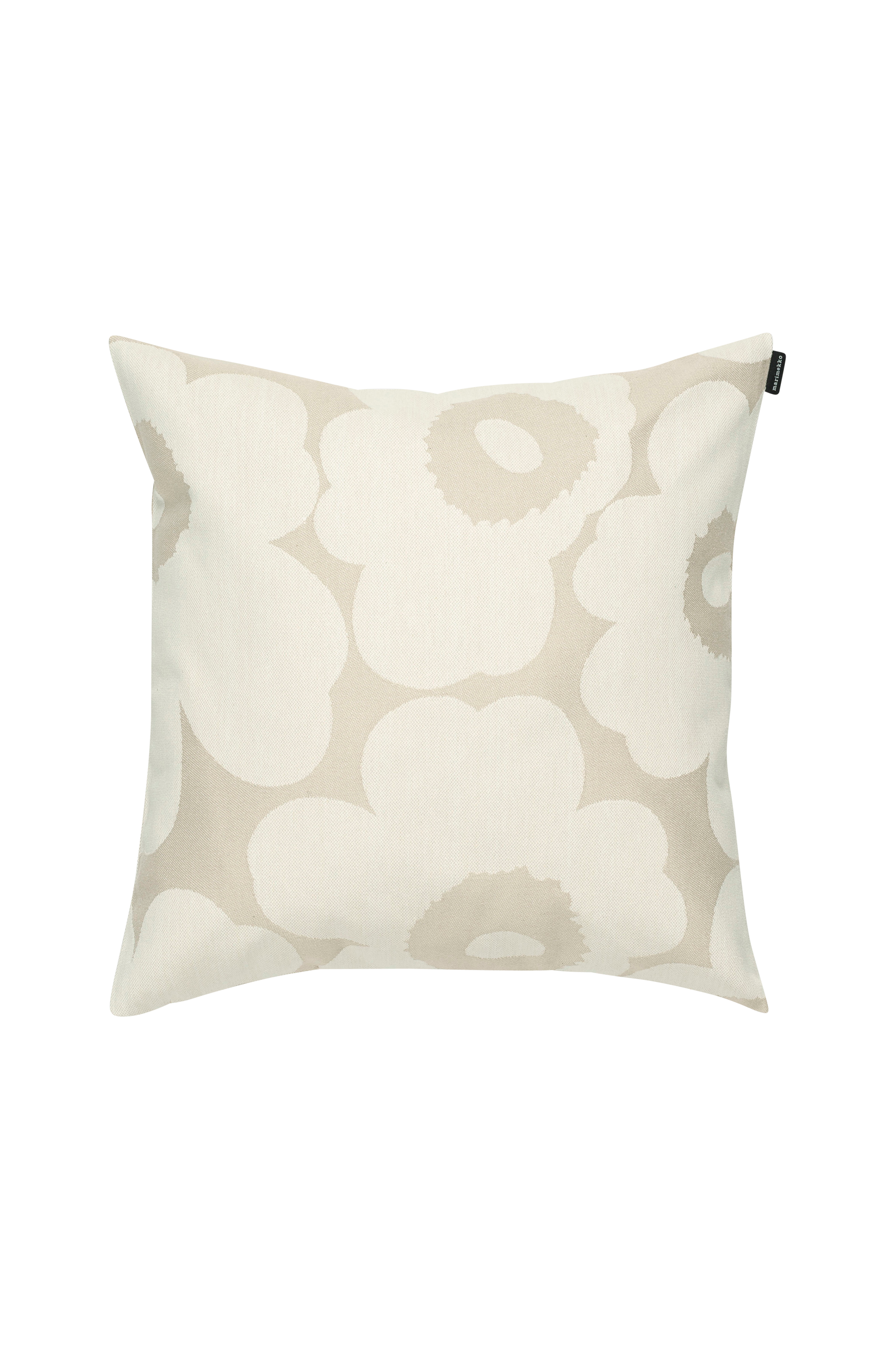 Jacquard-neulottu Unikko -kuvioinen tyynynpäällinen on valmistettu puuvillan ja pellavan sekoituksesta. Päällisessä on piilovetoketju toisella puolella. 53 % kierrätettyä puuvillaa, 10 % kierrätettyä pellavaa ja 37 % luomupuuvillaa. Valkaisemattomilla kankailla sekä kierrätyskuituja sisältävillä kankailla on luonnollinen elävä väri ja pinta, jossa voi esiintyä pieniä erivärisiä alueita. Tuotteiden välillä voi olla eroja tämän ominaisuuden suhteen.