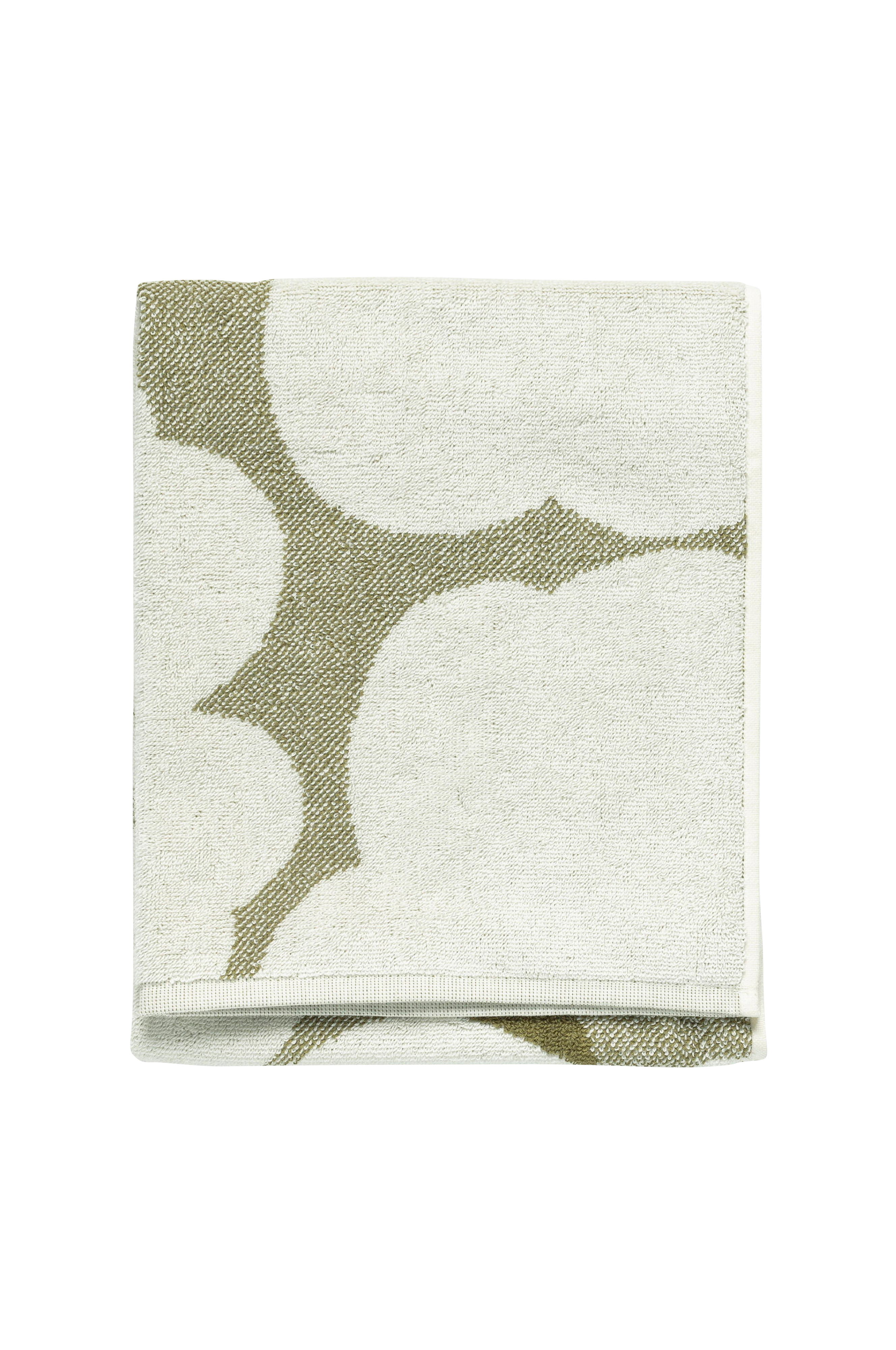 Tässä käsipyyhkeessä on Unikko -kuvio. Pyyhe on valmistettu 100 % orgaanisesta puuvillafroteesta.