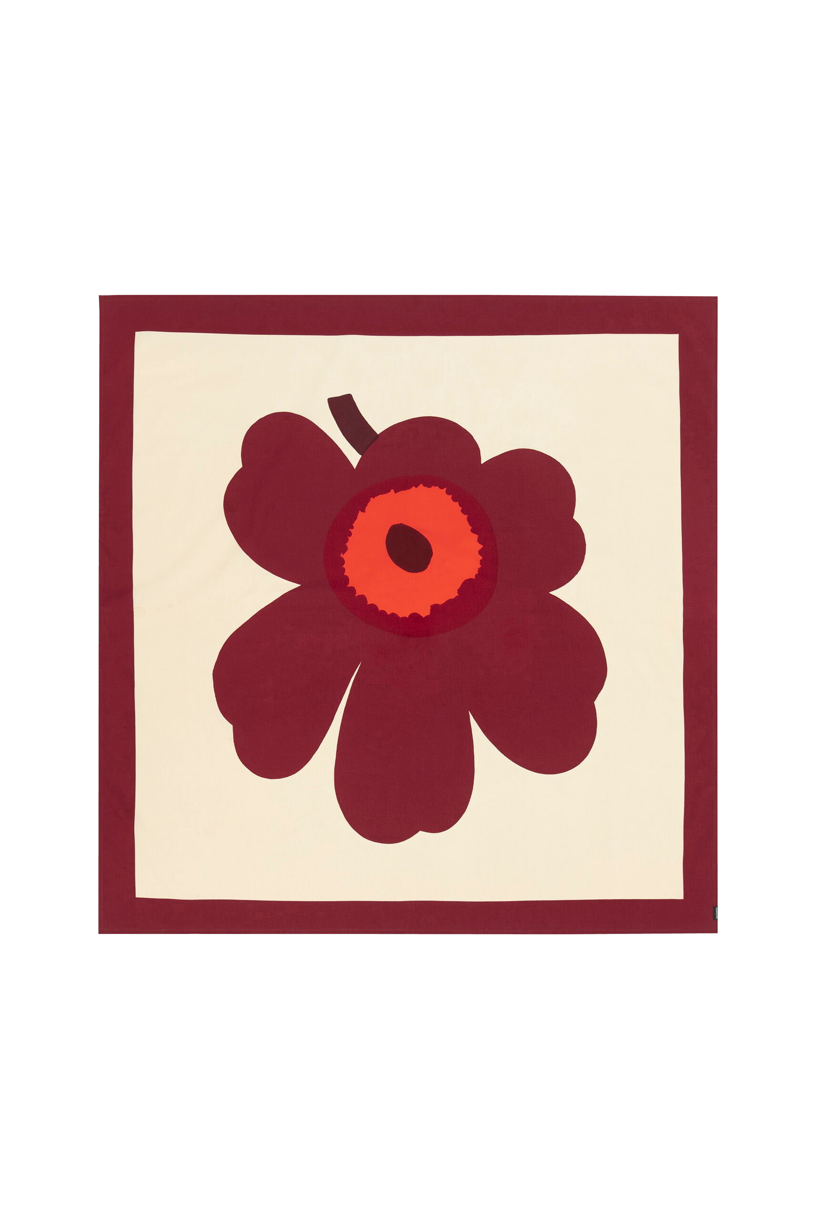 Tämä pöytäliina on painettu Helsingissä, ja siinä on keskellä Unikko -kukka ja punainen reuna. Pöytäliinassa on picot-reunapinta. Pöytäliina on valmistettu 100 % luomupuuvillasta. Unikko, luovuutta symboloiva, syntyi aikana, jolloin Marimekon mallistoissa ei juuri ollut kukkakuvioita. Maija Isola kuitenkin innostui kukkateemasta ja päätti luoda kokonaisen valikoiman uudenlaisia kukkakuvioita.