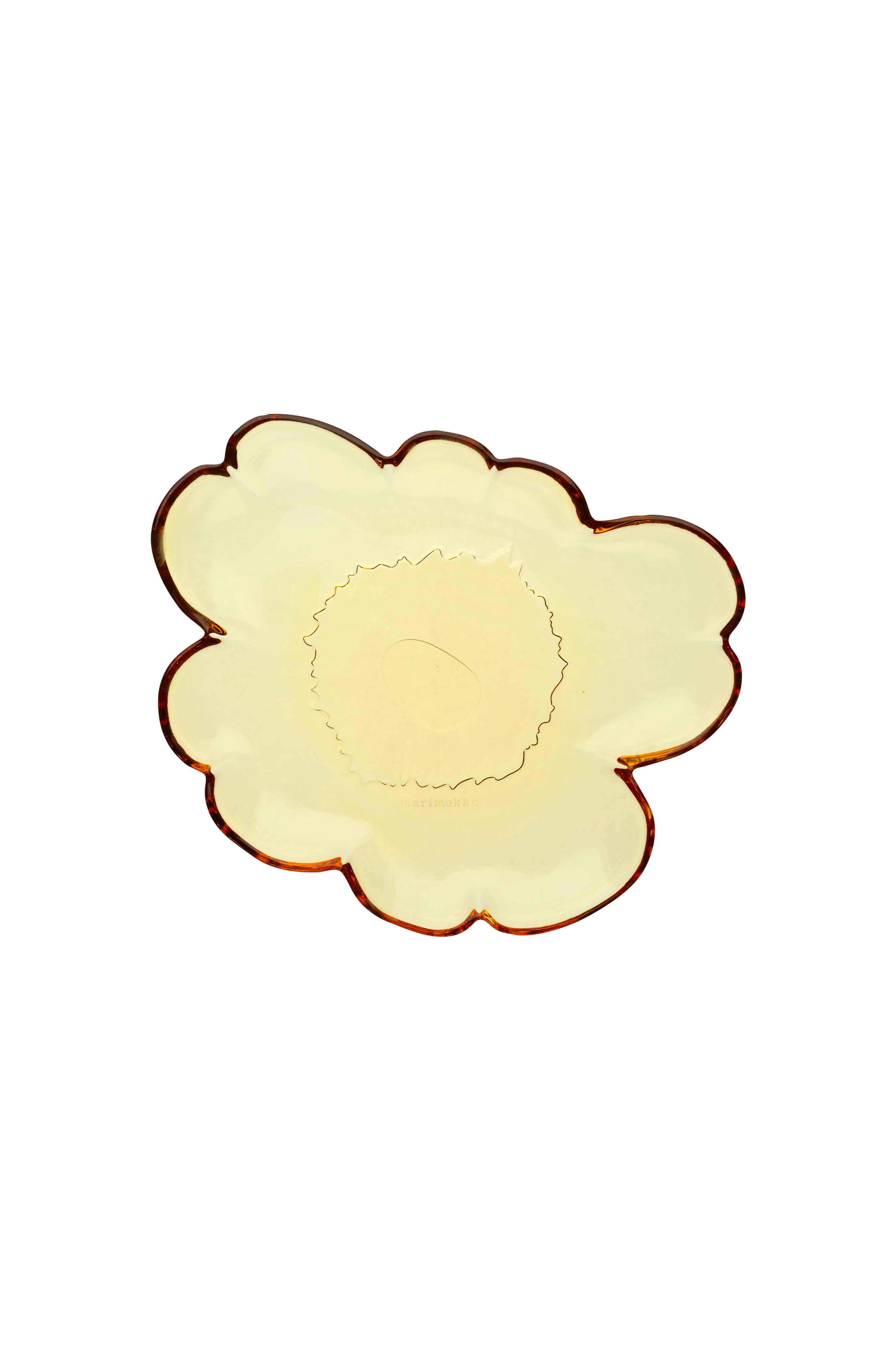 Tämä lasilevy on muotoiltu Unikko kukan muotoiseksi. Suosittelemme lautasen pesemistä käsin. Vaikka sen voi pestä koneessa, ainutlaatuinen muotoilu saattaa vahingoittua, jos se joutuu kosketuksiin muiden astioiden kanssa. Lautanen on valmistettu lasista. Tämä lasiesine on valmistettu perinteisillä käsityötekniikoilla, minkä vuoksi siinä voi olla ilmakuplia ja muita käsityön merkkejä. Lisäksi koko ja paino voivat hieman vaihdella kappaleiden välillä. Nämä ominaisuudet ovat osa lasiesineiden viehätystä. Tämä tuote on pakattu Marimekko Logo -kuvioiseen laatikkoon.