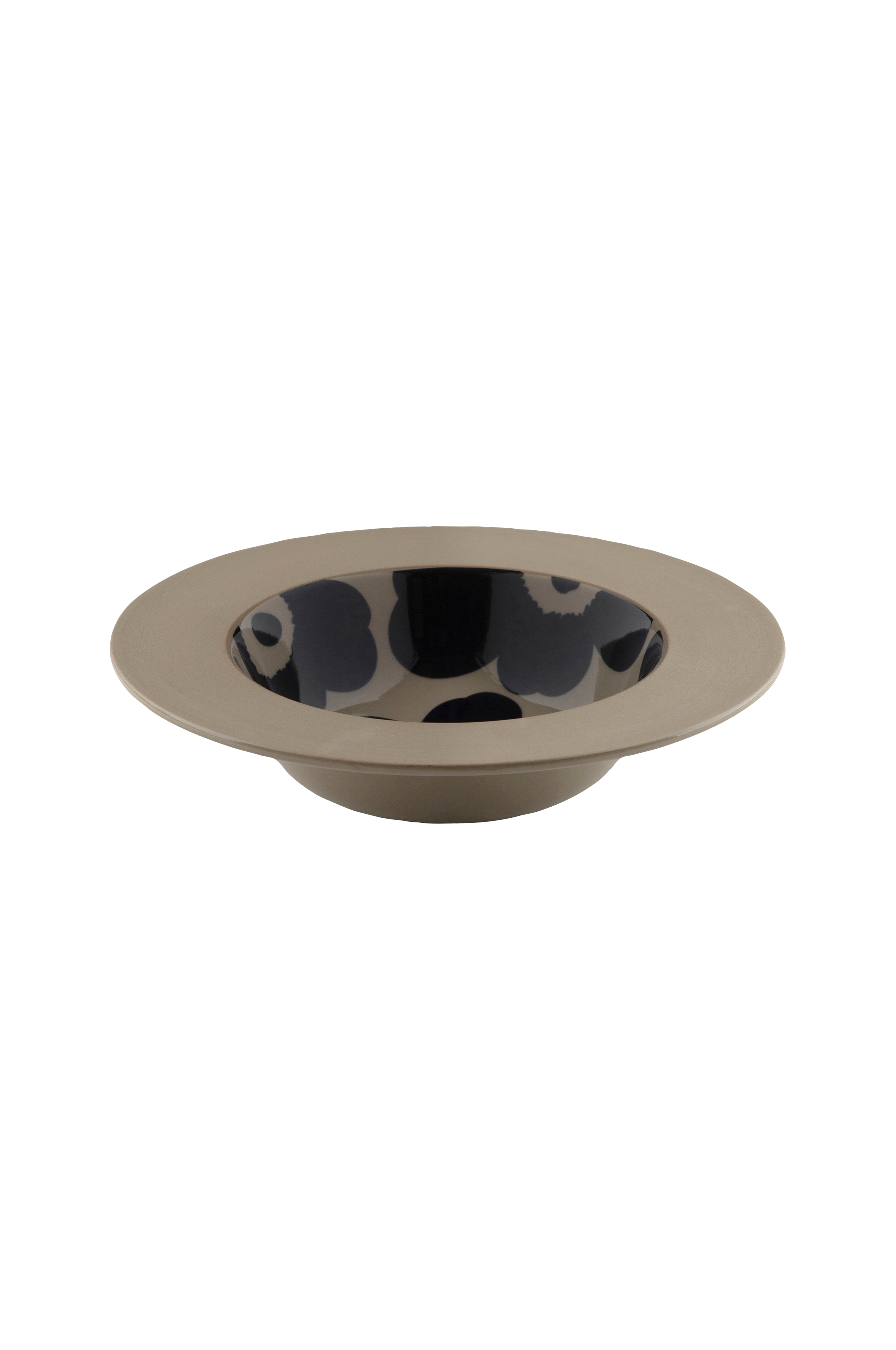 Syvä Unikko -kuvioinen Oiva-lautas on valmistettu ruskeasta kivitavarasta, joka on astianpesukoneen, uunin, mikroaaltouunin ja pakastimen turvallinen. Lautasessa on kauttaaltaan kirkas lasite paitsi reunan yläpuolella, joka on jätetty lasittamattomaksi ja luonnollisesti karheaksi. Poista tarra tuotteen pohjasta ennen käyttöä. Tarra sisältää pienen määrän metallia. Unikko on Maija Isolan vuonna 1964 luoma ja siitä on sittemmin tullut kansainvälinen painetun muotoilun ikoni. Marimekon perustaja Armi Ratia oli sitä mieltä, että aitojen kukkien todellista olemusta ei ole mahdollista vangita uskollisesti painokuviin, minkä vuoksi kukkapainatukset jätettiin aiemmin Marimekon mallistojen ulkopuolelle. Niinpä Maija Isola suunnitteli Unikko niin, että se on pikemminkin abstraktio kukasta kuin fotorealistinen toisinto. Nykyään Unikko on voimakas ilon ja luovuuden symboli, joka on integroitu saumattomasti Marimekon design-identiteettiin.