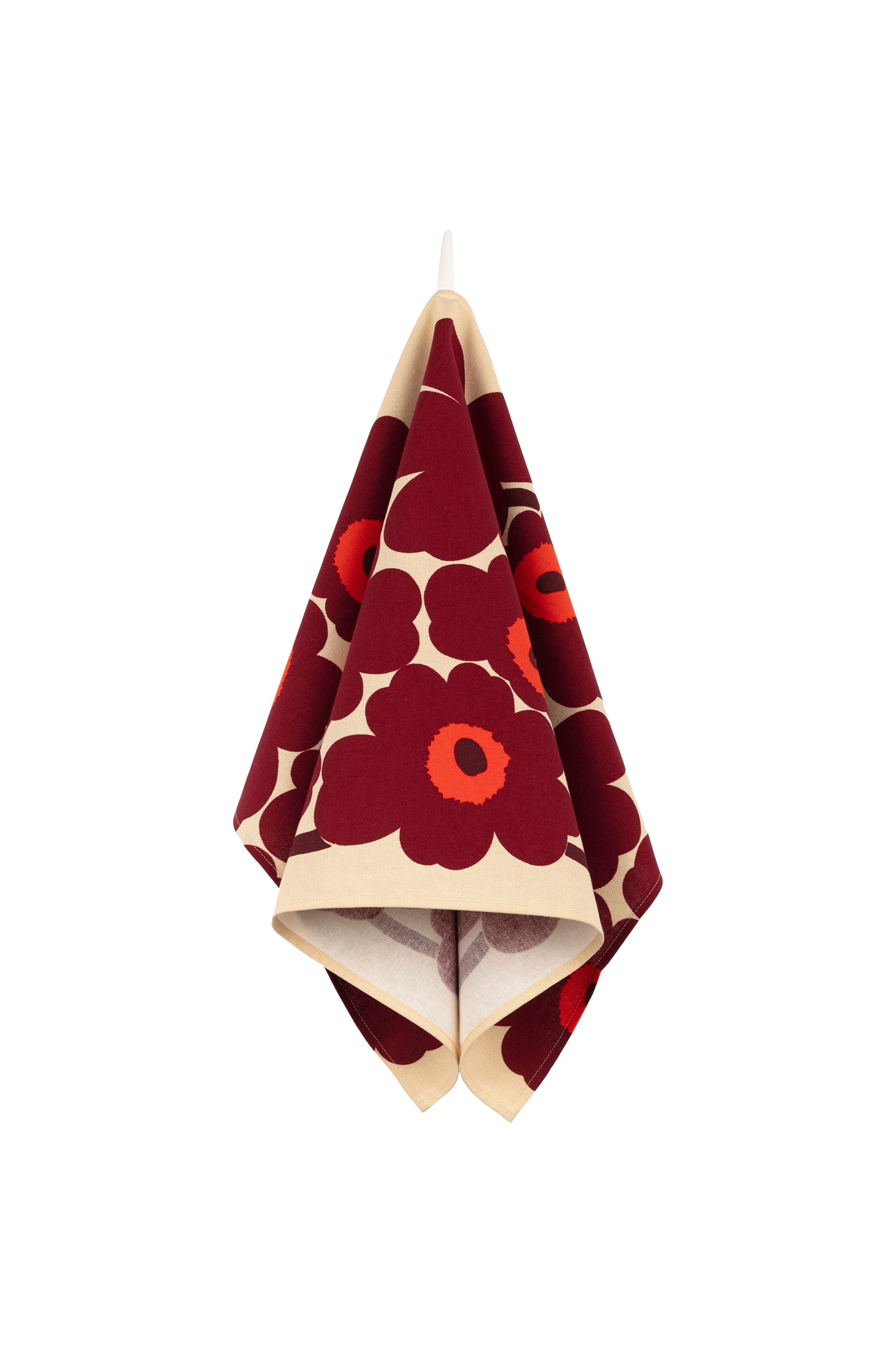 Pieni Unikko tea pyyhe on valmistettu valkaisemattomasta puuvilla-pellavasekoitteesta, ja kuvio on painettu Helsingissä. Tuote sisältää 33 % pellavaa. Tässä tuotteessa käytetty puuvilla on 46 % kierrätettyä puuvillaa. Valkaisemattomilla kankailla sekä kierrätyskuitua sisältävillä kankailla on luonnollisen elävä väri ja pinta, jossa voi esiintyä pieniä erivärisiä alueita. Tuotteiden välillä voi olla eroja tämän ominaisuuden suhteen.