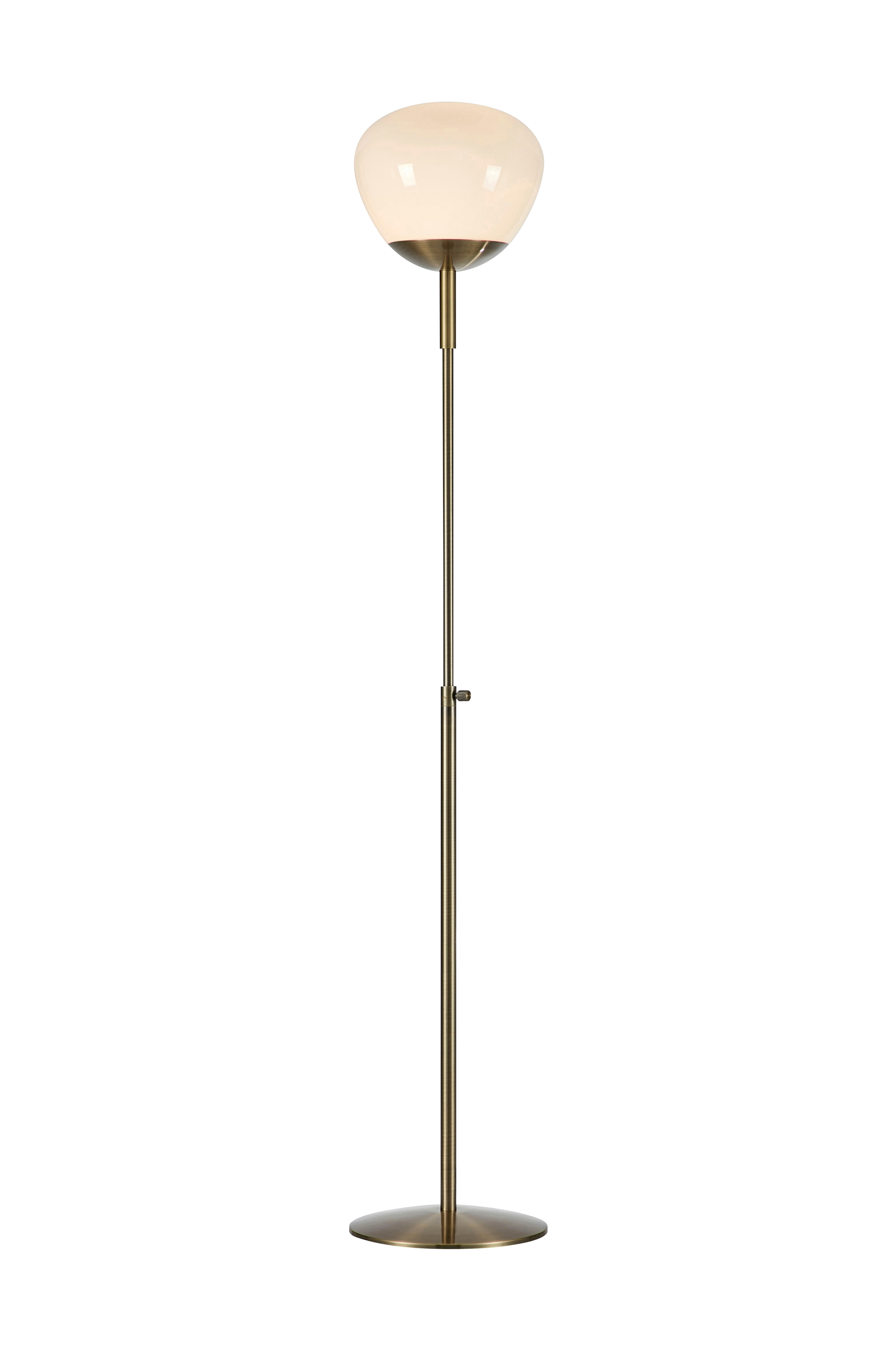 Markslöjdin Rise-lattiavalaisin, jossa metallirunko ja lasivarjostin. Jalassa säädettävä korkeus. 200 cm:n pituinen kangasjohto, jossa katkaisin ja pistoke. Valonlähde ei sisälly toimitukseen. Suunnittelija Monika Mulder.