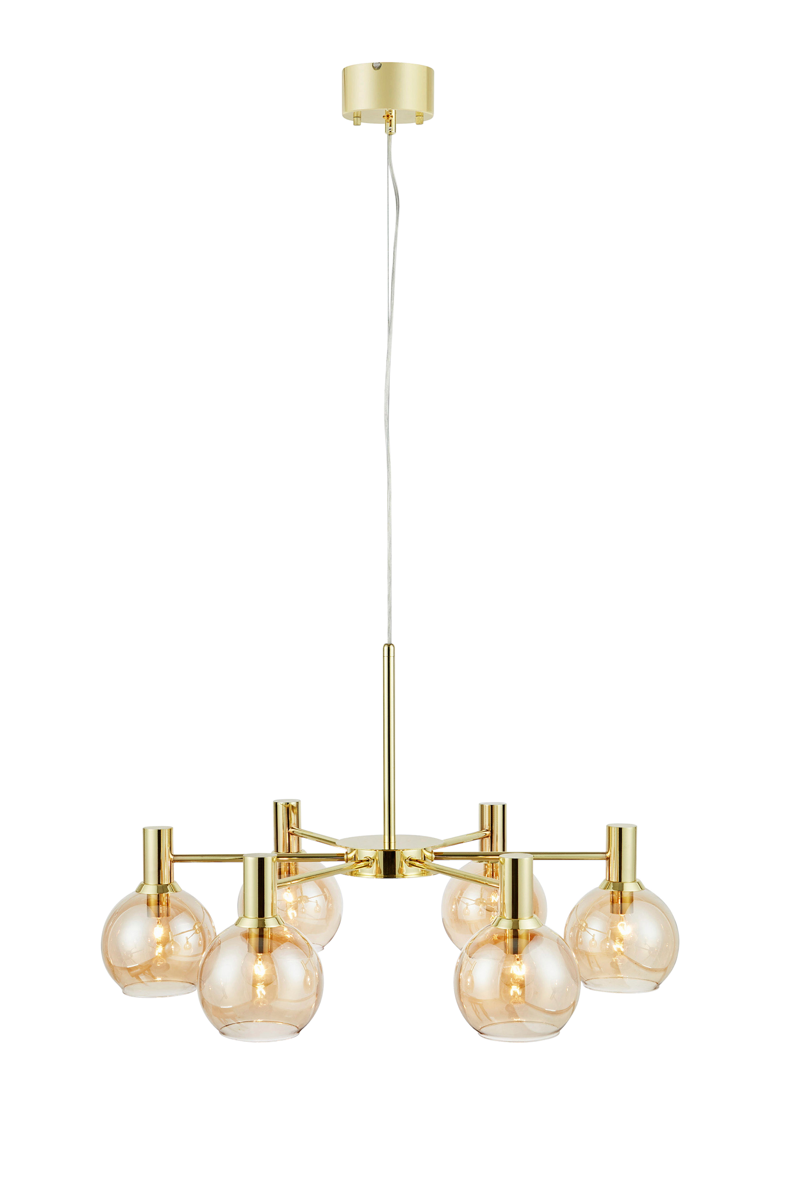 Ambra riippuvalaisin markslöjdiltä. Riippuvalaisin messinkiä, 6 kpl meripihkanväristä lasivarjostinta, halkaisija 75 cm. 1 m läpinäkyvä kaapeli. 6 x e14, max 40 w. Luokka i. Valonlähde ei sisälly.