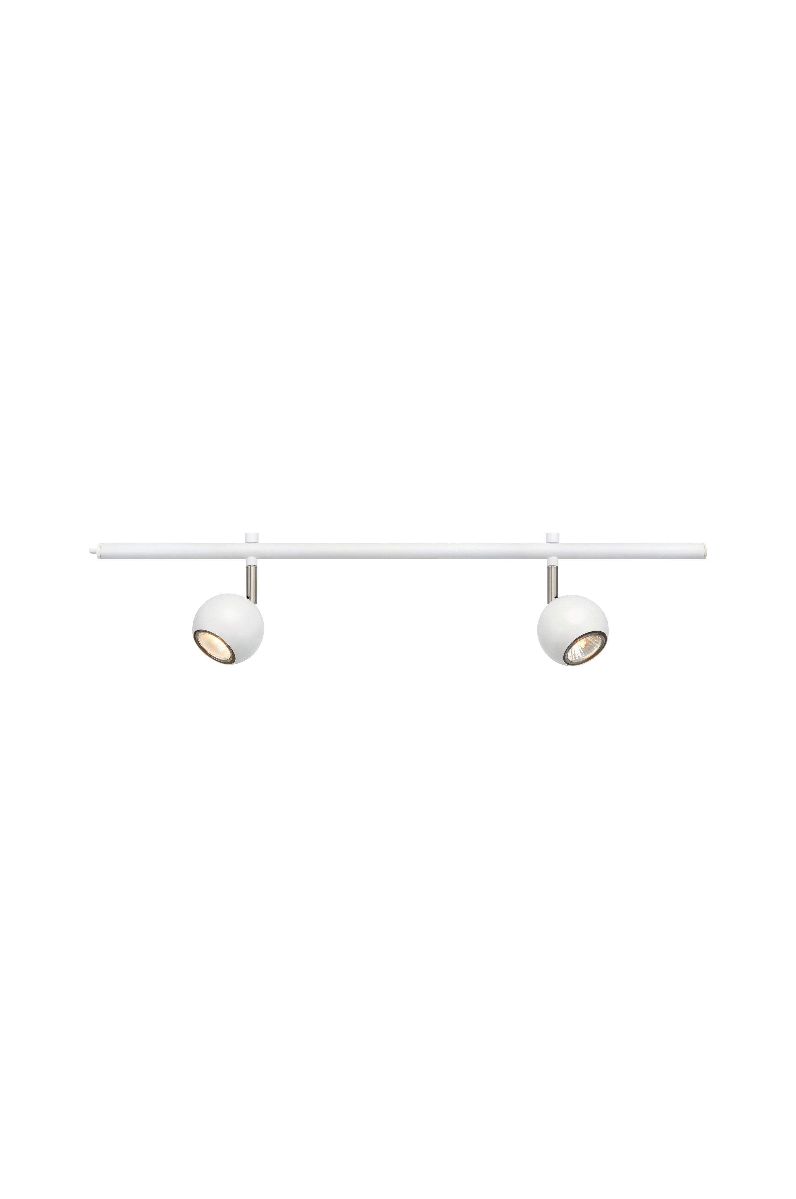 Markslöjd Expand -kattovalaisin. 70 cm:n metallinen kattovalaisin, jossa kaksi suunnattavaa pallomallista spottivalaisinta. Osa jatkettavaa Expand-järjestelmää. Asennetaan ruuveilla. Enintään 2x7 W. GU10-lampunkanta. Valonlähde ei mukana. Mitat: 72 x 8 x 17 cm.