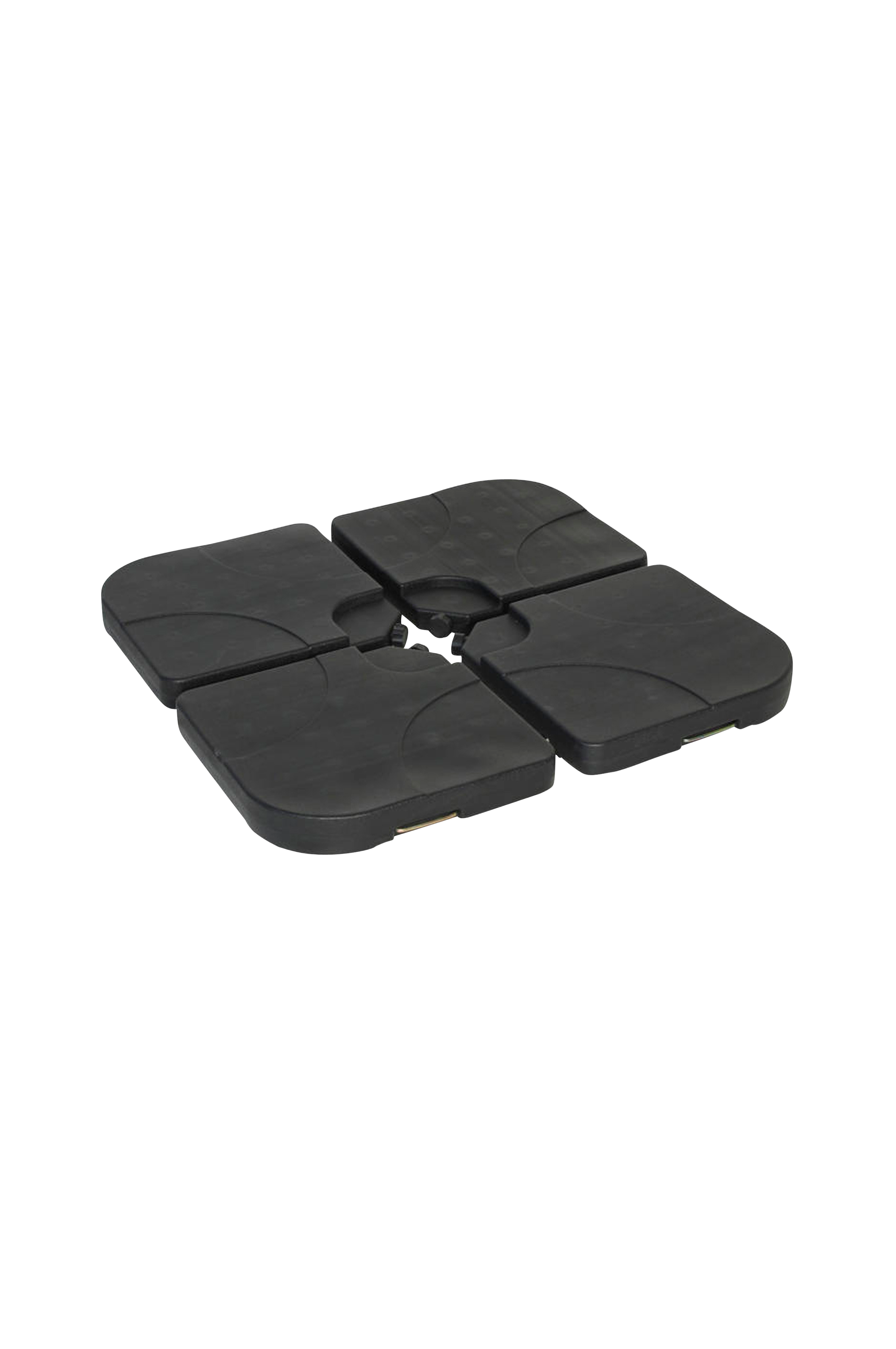 Aurinkovarjon jalusta, joka koostuu neljästä levystä. Kierrätettyä muovia. Elementit voi täyttää joko hiekalla tai vedellä. Sopii Tobago- ja Banana-aurinkovarjoihin.
