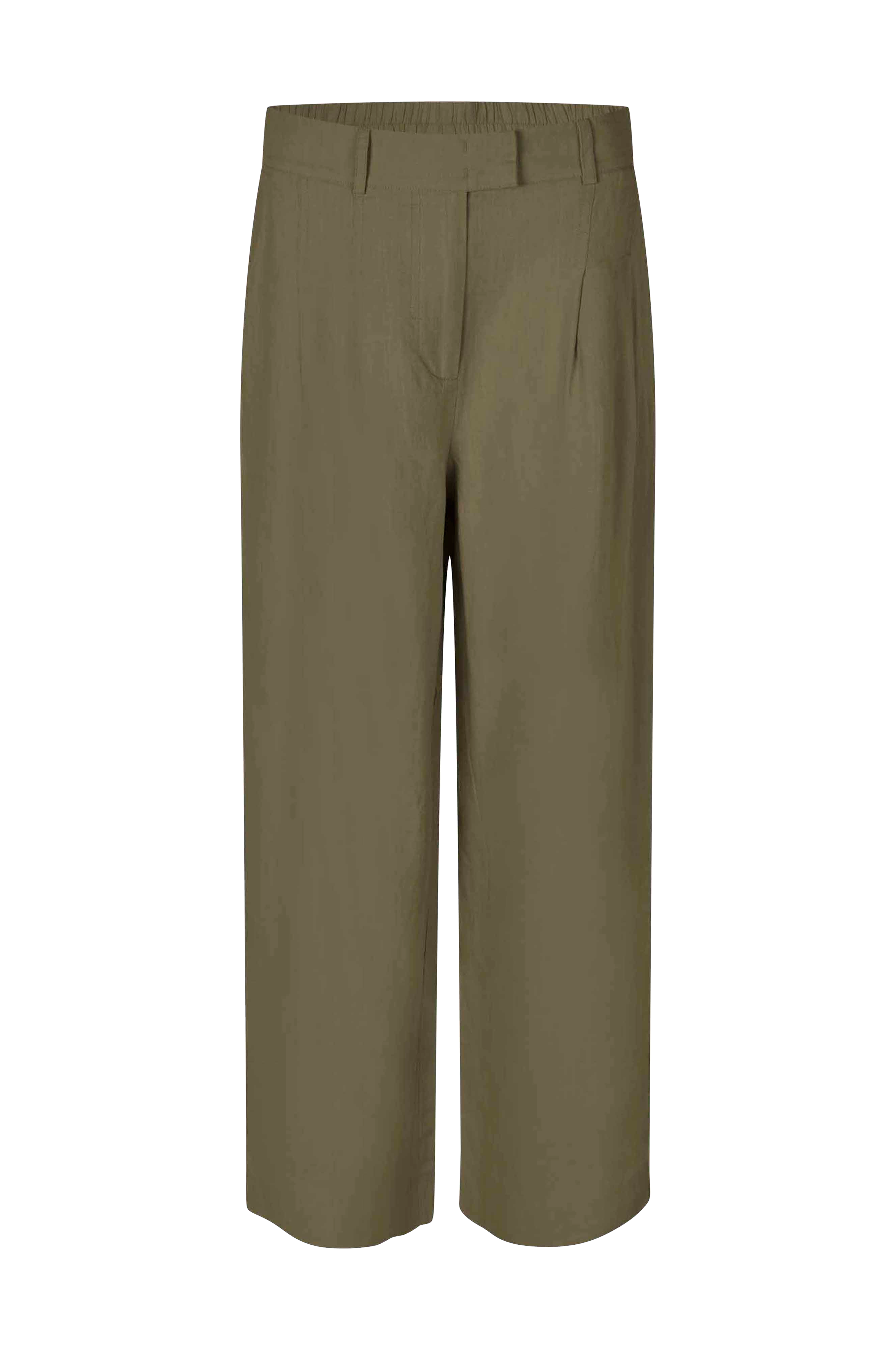 • Malli löysällä istuvuudella • Vyötärönauha silmukoilla ja kuminauhalla takaosa • Ommellut vekit ylhäällä edessä • Vinot taskut • Leveät jalat • Lahkeen sisäpituus: 72 cm koossa S