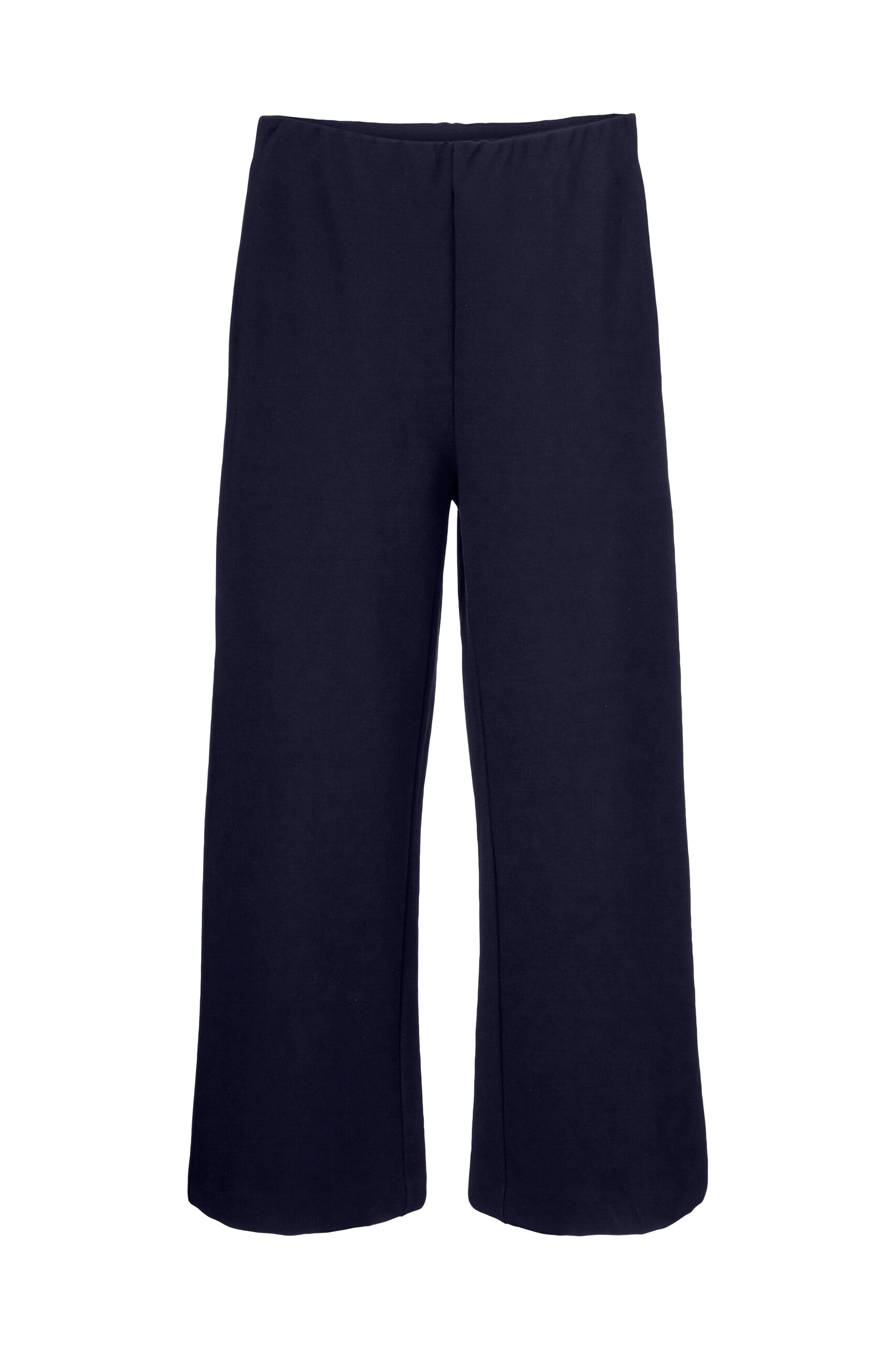Väljät housut, joissa nilkkapituinen malli. Sivutaskut ja piilokuminauha vyötäröllä. Napakkaa ja raskaasti laskeutuvaa jerseytä.