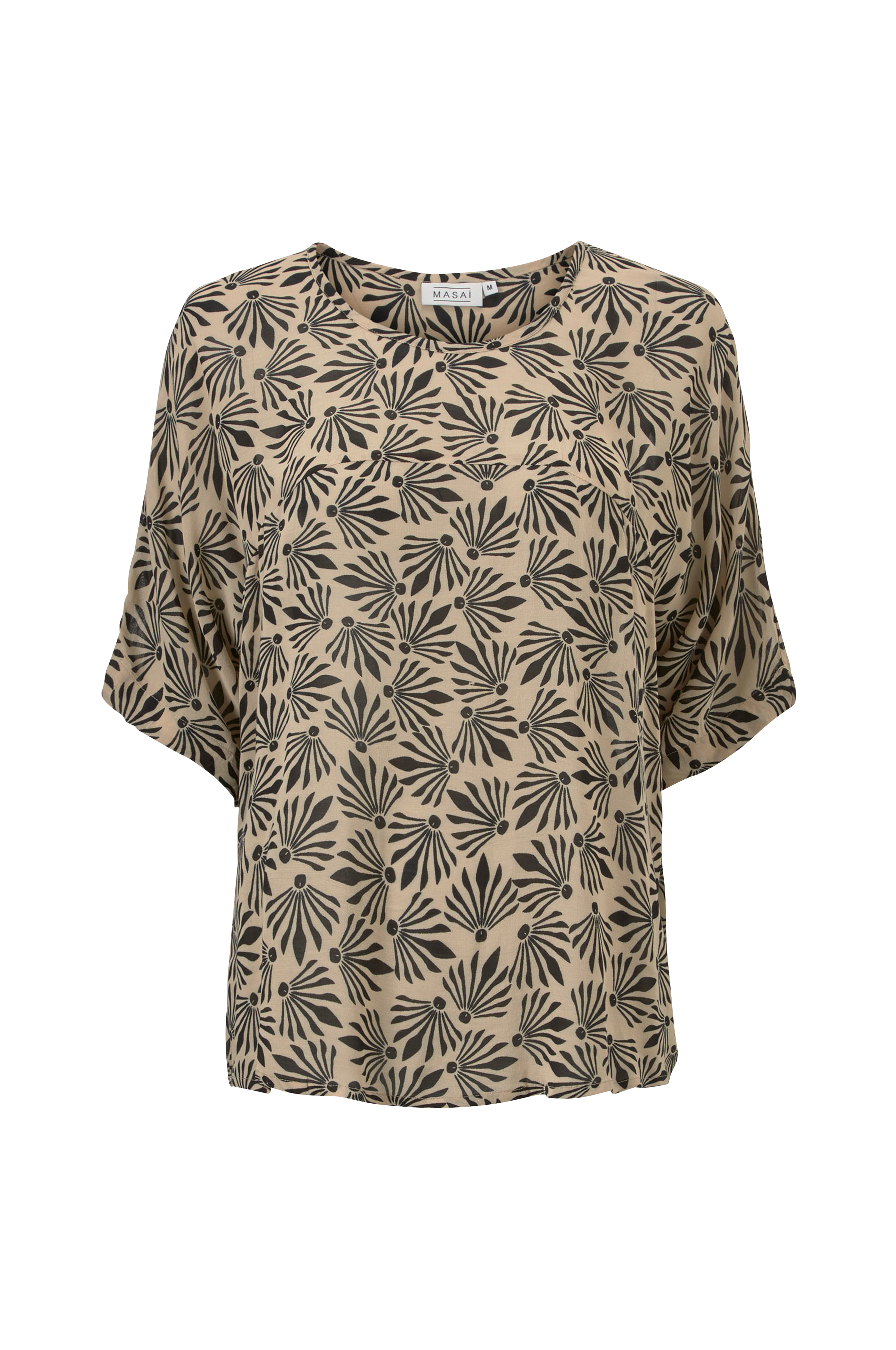 Masai Daly -paita hieman läpikuultavaa viskoosia. Suora ja väljä istuvuus, lyhyet hihat ja koristesauma rinnassa ja selässä.
