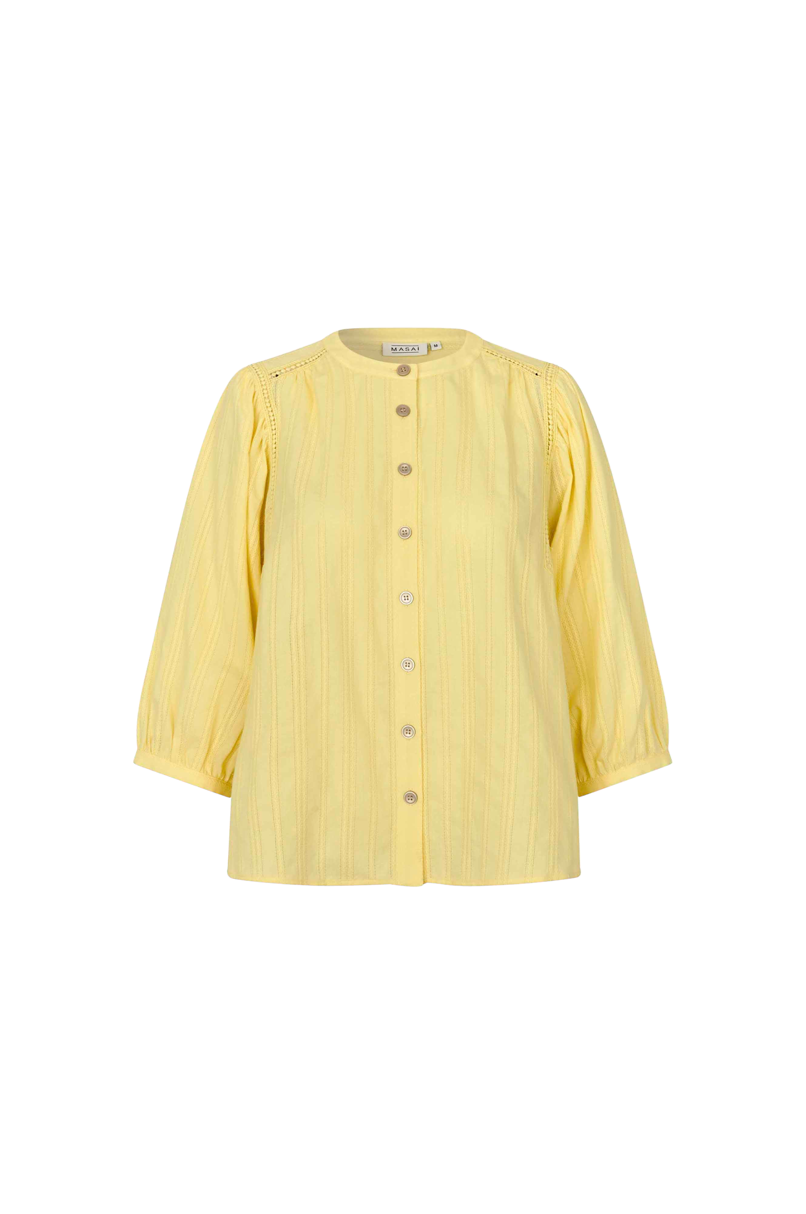 • Pusero pitsikirjonnoilla• Pyöreä kaula-aukko• Napit edessä• 3/4-pituiset puhvihihat ohuilla hihansuilla hihansuissa