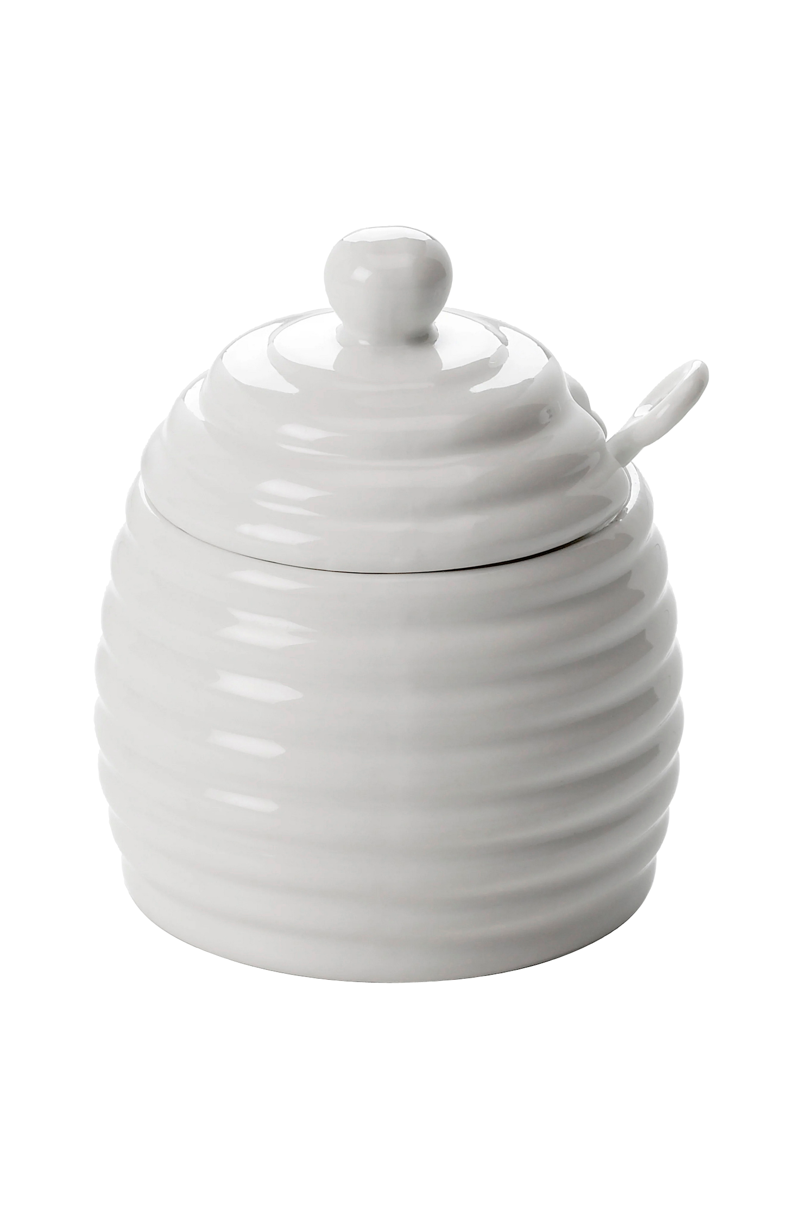 Kaunis posliininen hunajakulho ja siihen sopiva lusikka. Kuuluu tunnetun Maxwell & Williamsin White Basics -sarjaan.