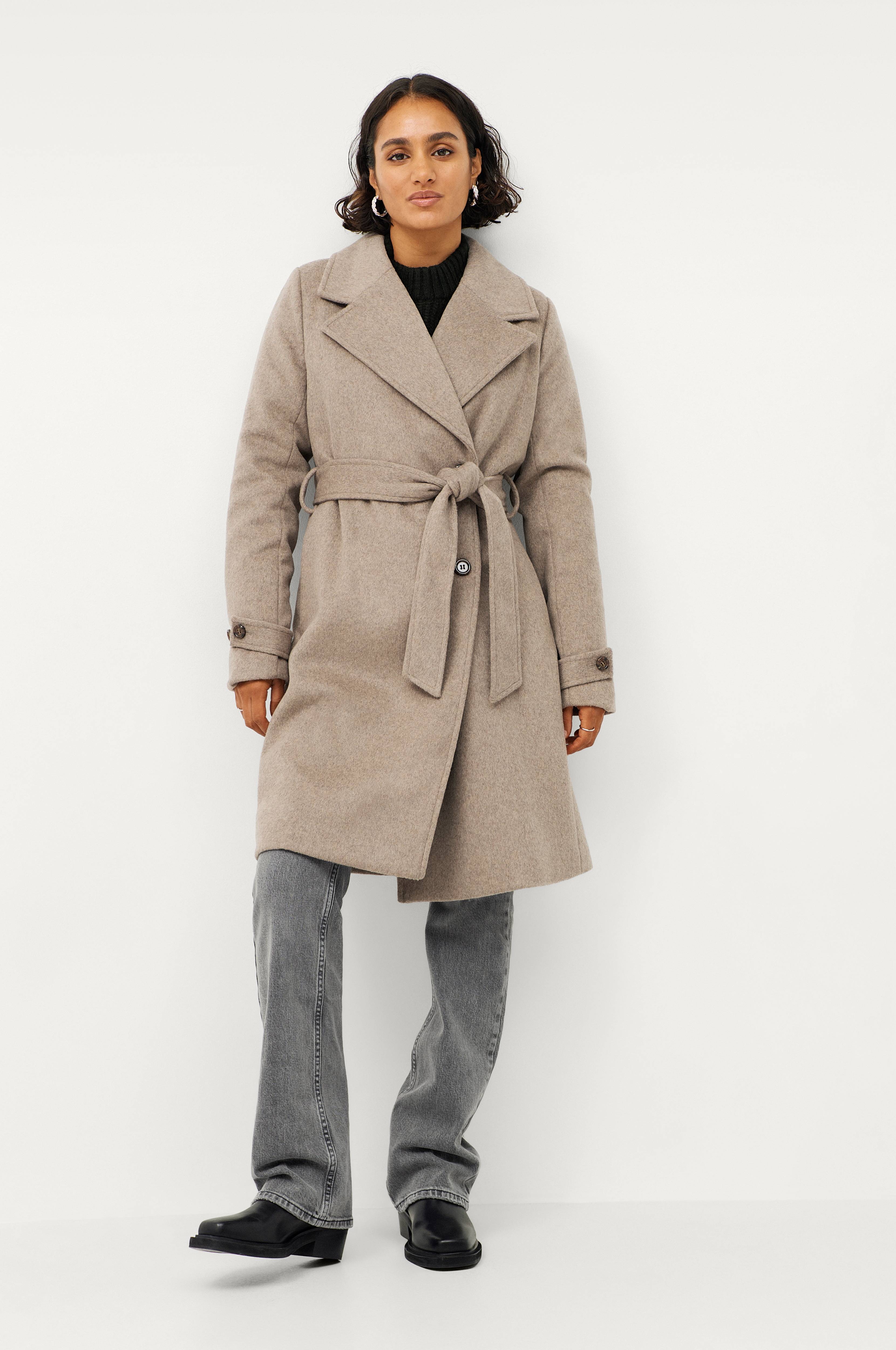 • Klassinen takki villasekoitteesta • Kaulus käänteellä • Itsesolmittava vyö vyötäröllä • Halkio alhaalla takana • Sivutaskut • Pituus: 98 cm koossa S • Tuote sisältää kierrätettyä villaa, jonka käyttö vähentää kemikaalien ja veden määrää tuotannossa. Resurssien säästäminen ja jätteen hyödyntäminen ovat pienentäneet tuotteen ympäristövaikutusta.