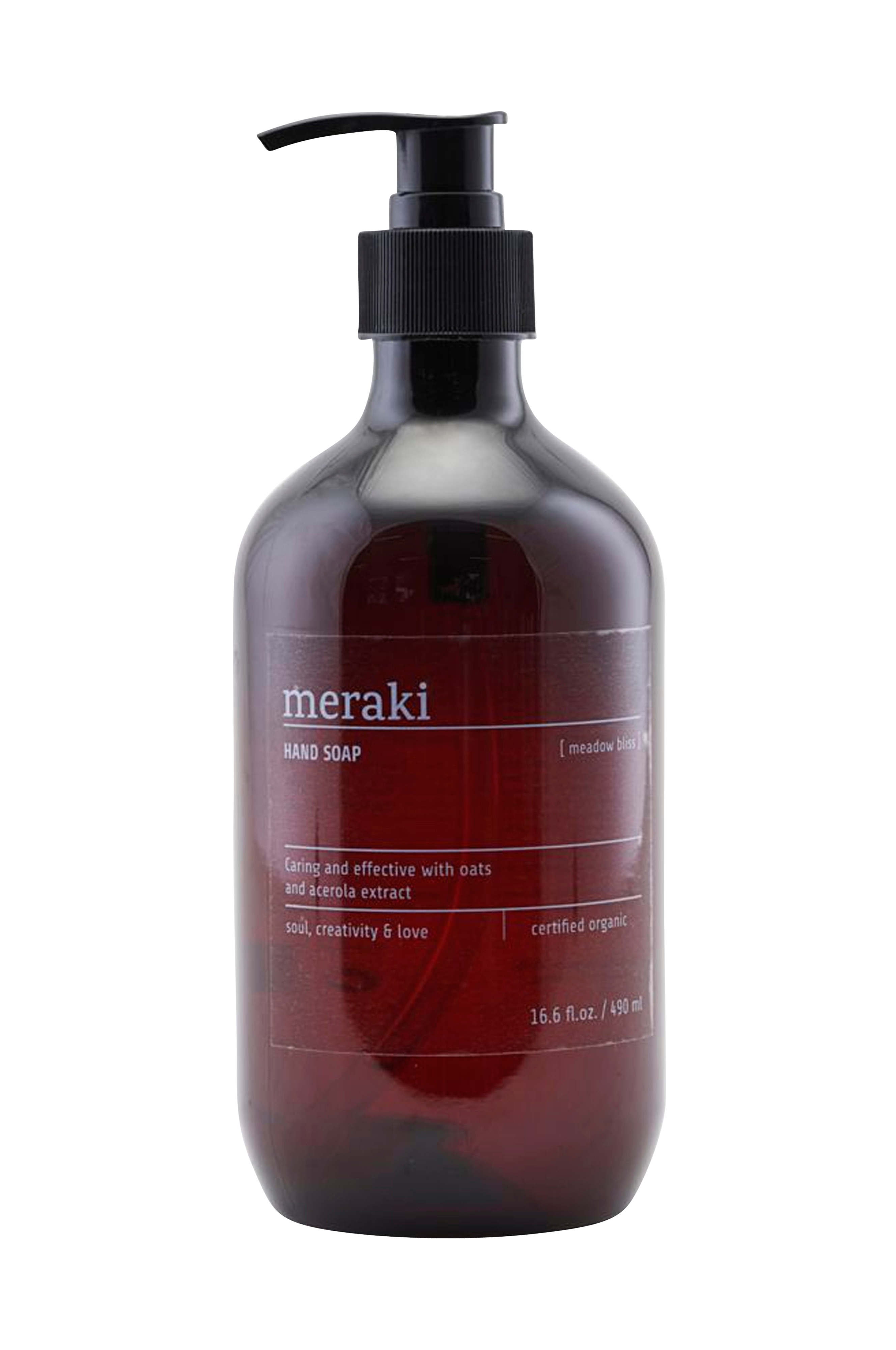 Merakin Meadow Bliss -käsisaippua on orgaaninen, sertifioitu tuote. Meadow Bliss -saippuassa tuoksuvat sitruunan, mintun ja teen sävyt. Pelkistetty ja tyylikäs pullo on koristeellinen yksityiskohta kylpyhuoneessa tai keittiössä. Saippua sopii päivittäiseen käyttöön ja kaikille ihotyypeille. Nauti puhtaiden käsien tuoksusta ja viimeistele kädet hoitavalla käsivoiteella.