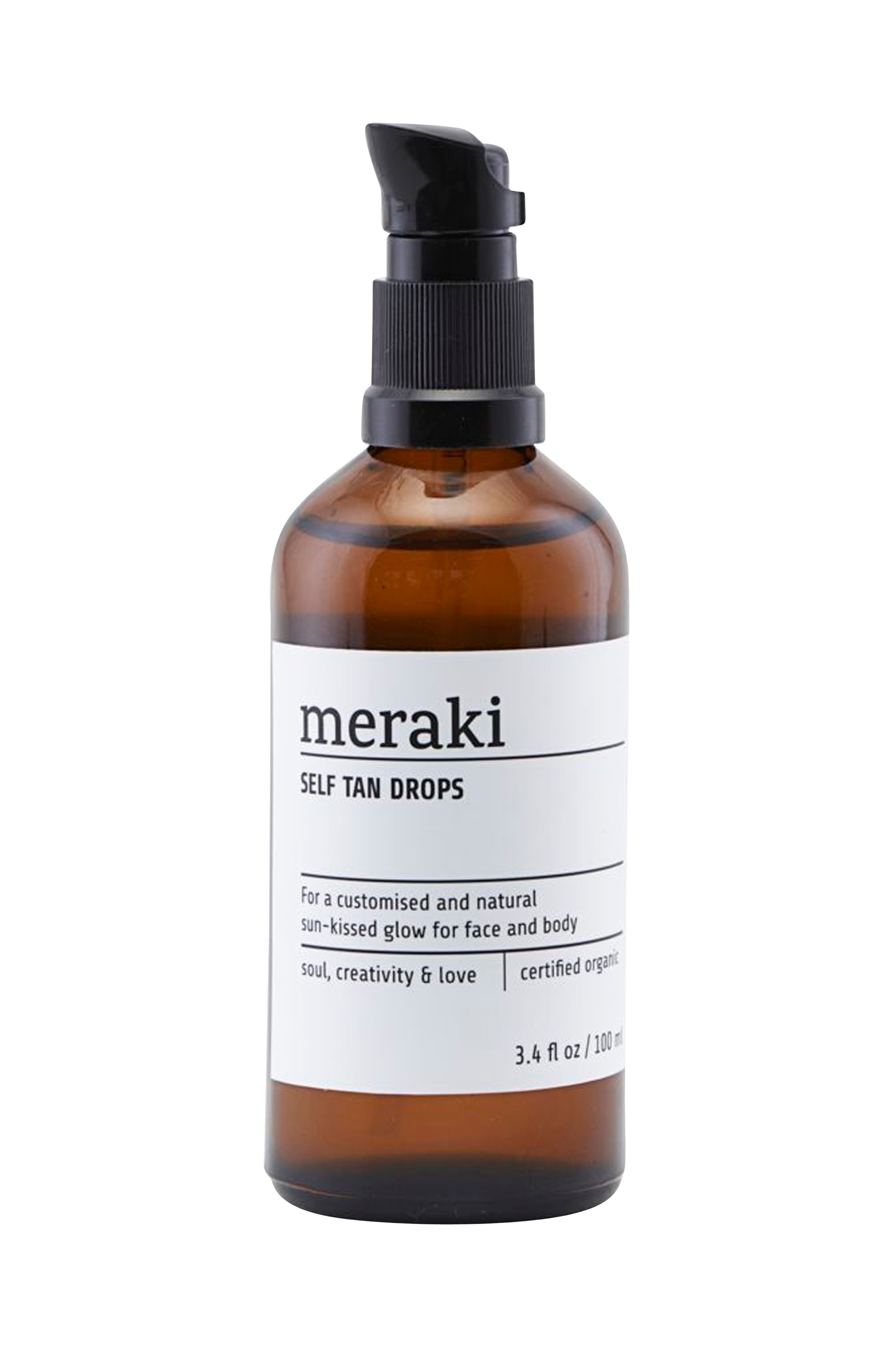 Meraki Self Tan Drops on suunniteltu kauneustietoiselle naiselle, joka on tarkka ihon terveydestä. Ne tarjoavat auringon suuteleman hehkun ilman suoraa altistumista auringolle. Hajusteettomat ja orgaanista aloe veraa sisältävät Merakin pisarat kosteuttavat ihoa ja ehkäisevät sen kuivumista. Luonnonmukaisten kaura- ja kurkkuuutteiden lisääminen tarjoaa hoitavia, rauhoittavia ja kosteuttavia vaikutuksia. Ruskettuneen ilmeen luova aktiivinen ainesosa on DHA, luonnollinen sokeri. Pisaroita voidaan käyttää kasvoille ja vartalolle, jolloin rusketus muodostuu vähitellen ja kestää jopa 10 päivää.