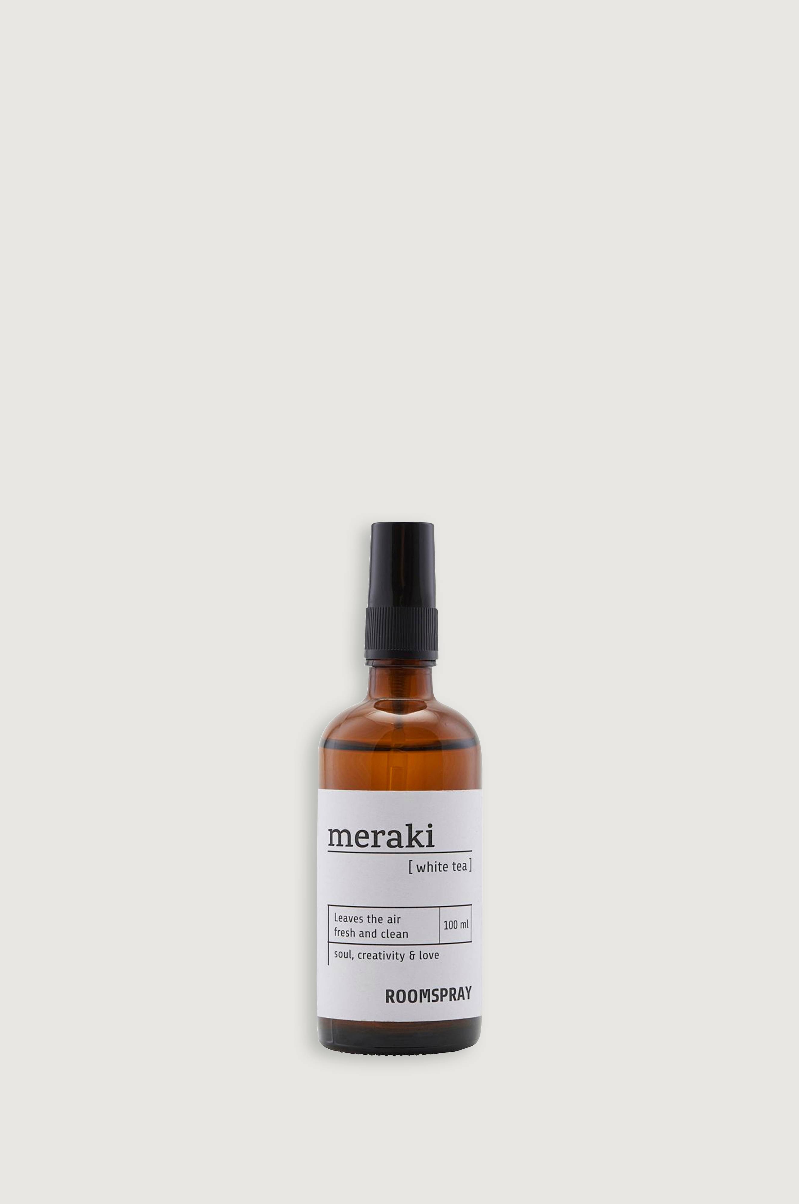 Anna kotiisi raikas tuoksu ja puhdas tunnelma Merakin huonesuihkeella. Suihkeessa on valkoisen teen inspiroima raikas tuoksu, joka luo rauhallisen tunnelman. Vain yhdellä tai kahdella suihkauksella saat ihanan huonetuoksun. Pullo on koristeellinen ja on kiva sisustusdetalji kodissasi.