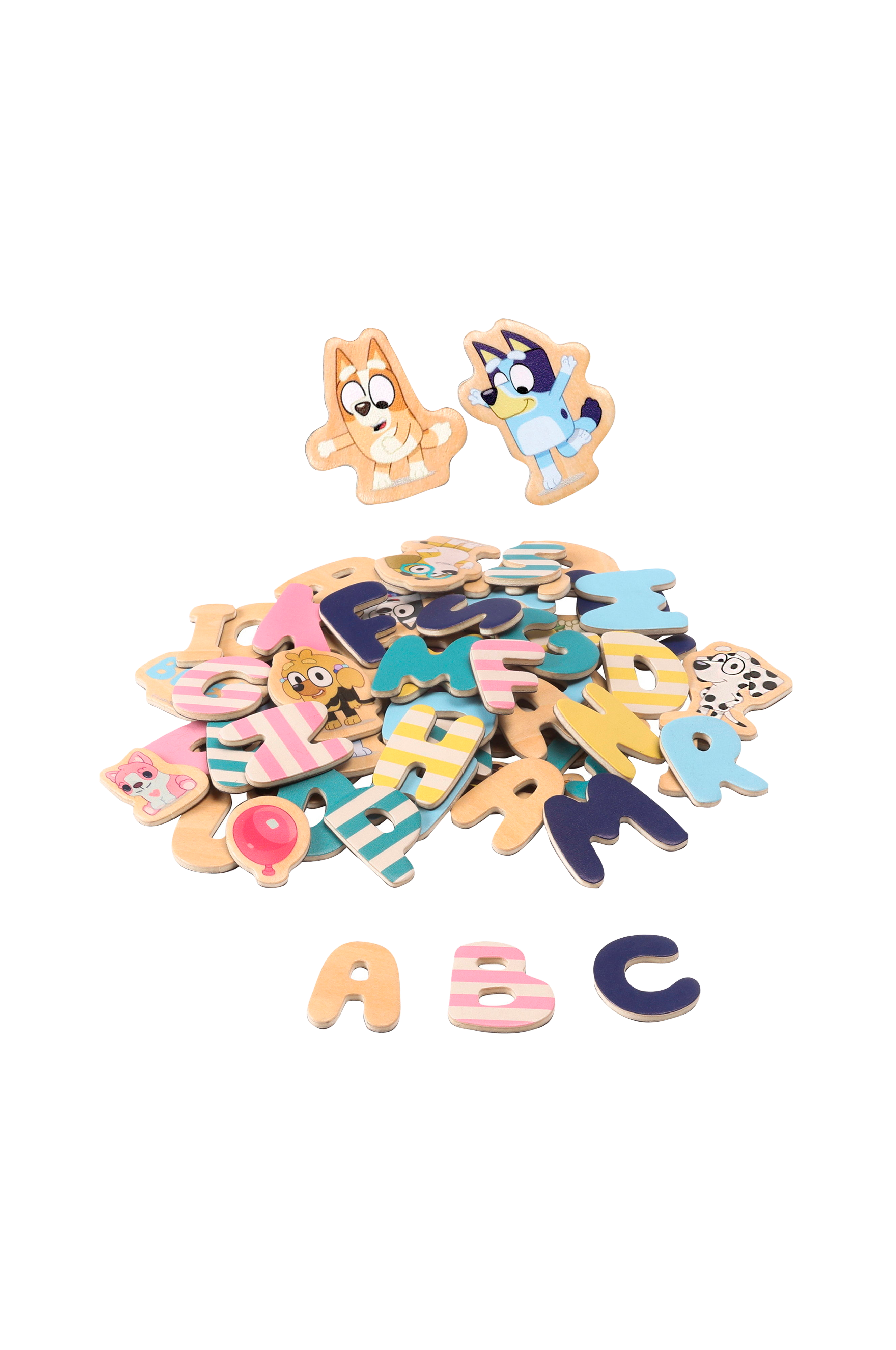 Magneettien värit ovat leikkisät, ja Bluey ja hänen ystävänsä tekevät magneettileikistä entistäkin hauskempaa. Setti sisältää 53 kirjainta pohjoismaisista ja saksalaisista aakkosista ja 17 hahmoa. Leikkimällä kirjaimilla ja rakentamalla yhdessä nimiä ja sanoja lapset tutustuvat kirjainten muotoihin ja harjoittelevat ääntämistä ja oikeinkirjoitusta.