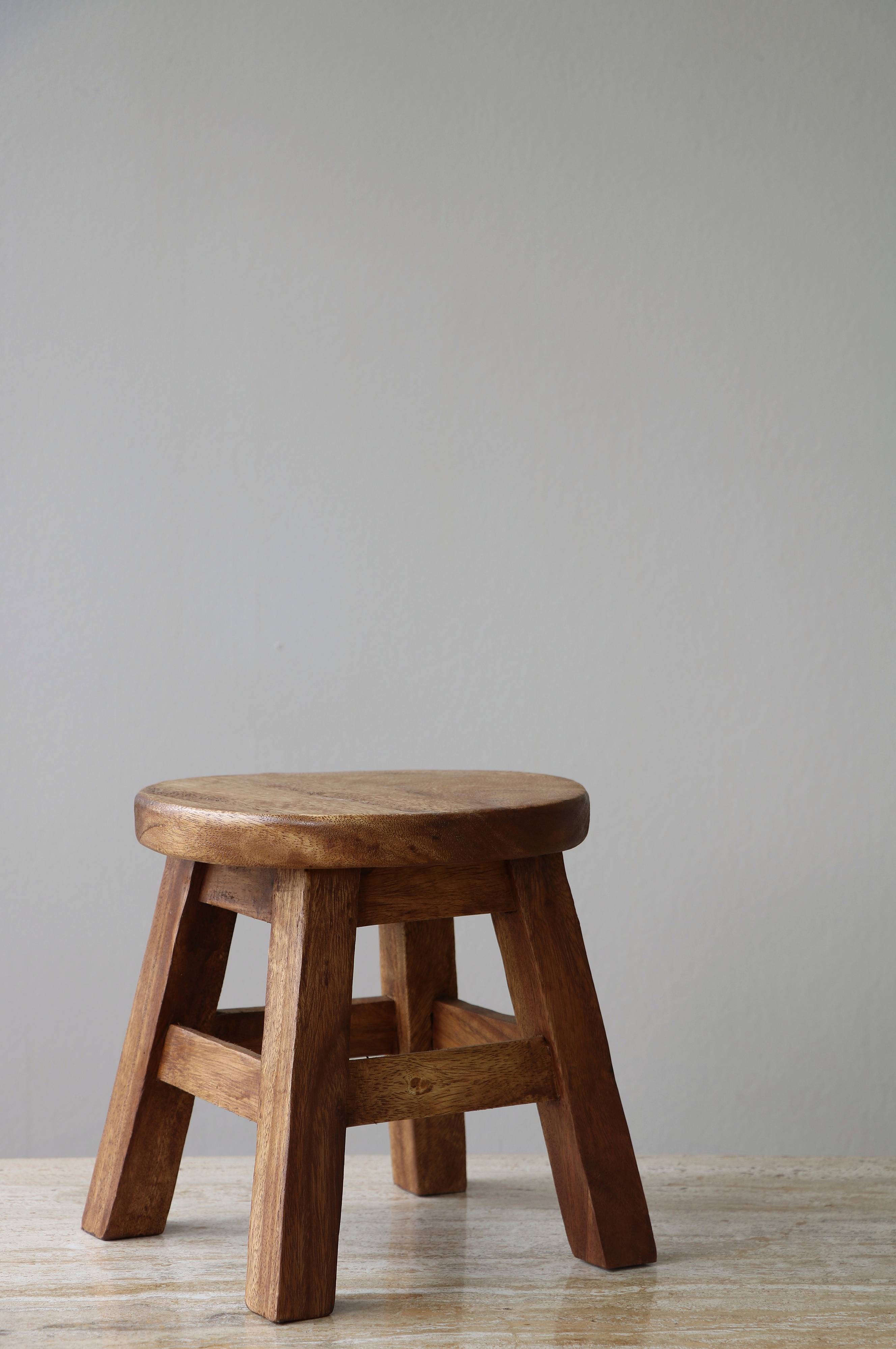 Käsintehty pieni jakkara tummaa öljyttyä puuta. Hyvä koko perheen pienimmille. Tukeva rakenne sopii täydellisesti pesualtaan ja keittiötason yhteyteen, jotta lapsi ylettyy olemaan avuksi. Jakkaroissa voi olla yksilöllisiä eroja, koska ne on valmistettu käsin. Korkeus 26 cm ja halkaisija 26 cm.
