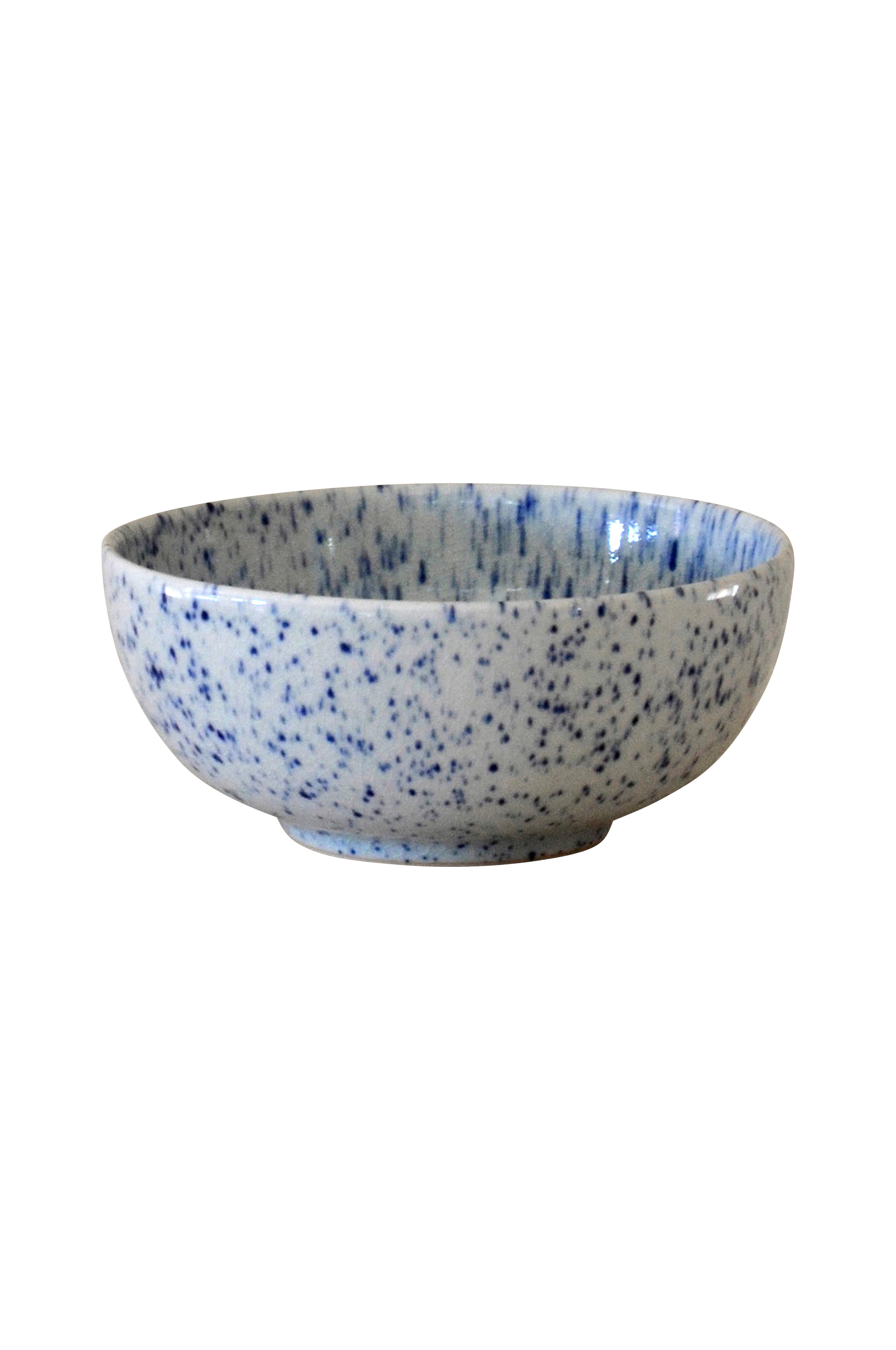 Käsinvalettu keramiikkakulho. Mattapintainen Celadon-lasitus, jossa krakelointia, kauniita sävyvaihteluita ja kova pinta. Sininen, käsin maalattu roiskekuvio on erilainen astiaston eri osissa. Kulho sopii kooltaan erinomaisesti pieneksi salaattikulhoksi tai perunalastujen tai kastikkeiden tarjoiluun jne. Lampangissa, Pohjois-Thaimaassa valmistettu Mimous PURE -tuotesarja sisältää keraamisia tarjoiluastioita. Alue on tunnettu hyvälaatuisesta luonnonsavesta, jonka suuri kaoliinipitoisuus tekee keramiikkatuotteista erittäin kestäviä. Sarjan jokainen osa valetaan käsintehtyihin muotteihin ja lasitetaan jollakin Mimousin lasitteella. PURE-astiasto on eleetön ja viehättävä tavalla, johon ei kyllästy. Se tunnetaan puhtaista, sopusuhtaisista muodoista sekä iskunkestävästä laadusta, joka perustuu hyvälaatuiseen savimateriaaliin ja kovaan lasitukseen. Kestää konepesun ja käytön mikroaaltouunissa. Koko 18 cm