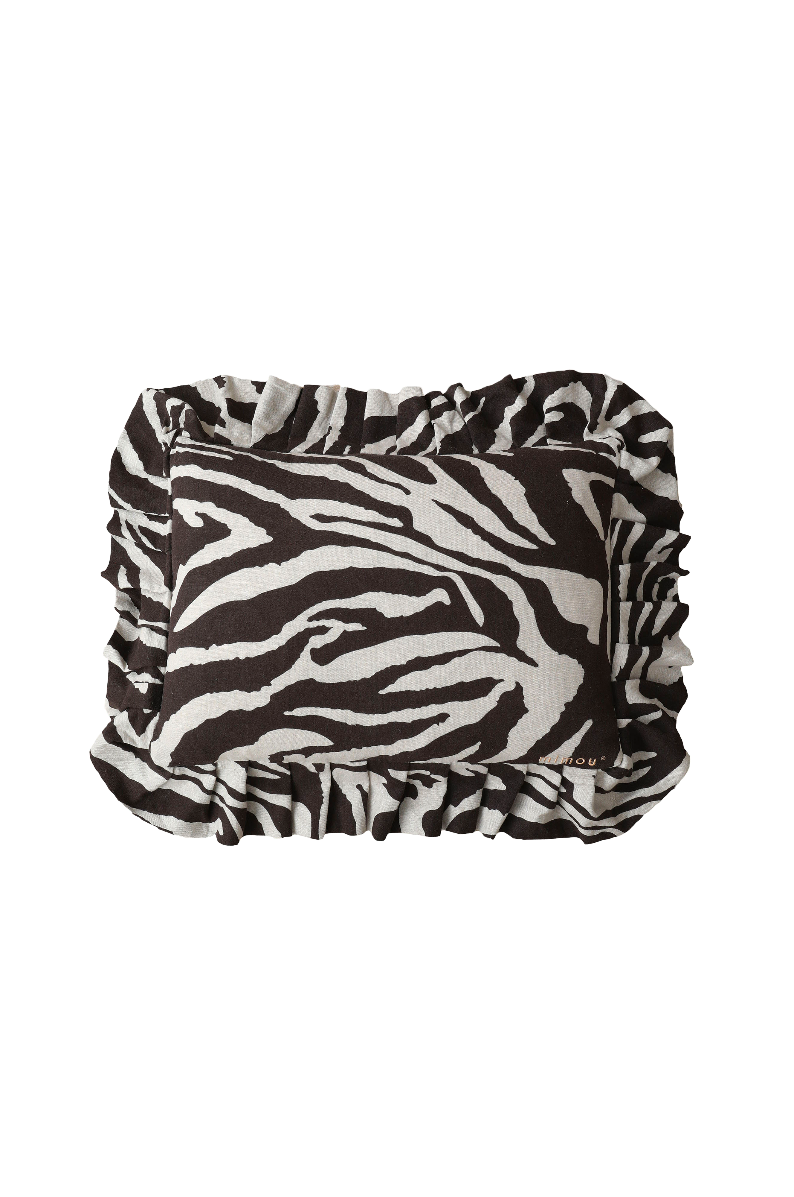 Käsintehty tyyny, jossa on kaksinkertaisesta kankaasta valmistettu röyhelö. Pieni koristetyyny on ommeltu tuotannosta ylijääneestä kankaasta. Materiaalien uudelleenkäyttö uuden tuotannon sijaan on kestävämpi valinta ja askel tekstiilijätteen vähentämiseksi. Myydään sisältäen ankanhöyhenestä valmistetun sisätyynyn, joka on Öko-Tex®-sertifioitu. Koko: 35X45 cm + 10 cm hapsut.