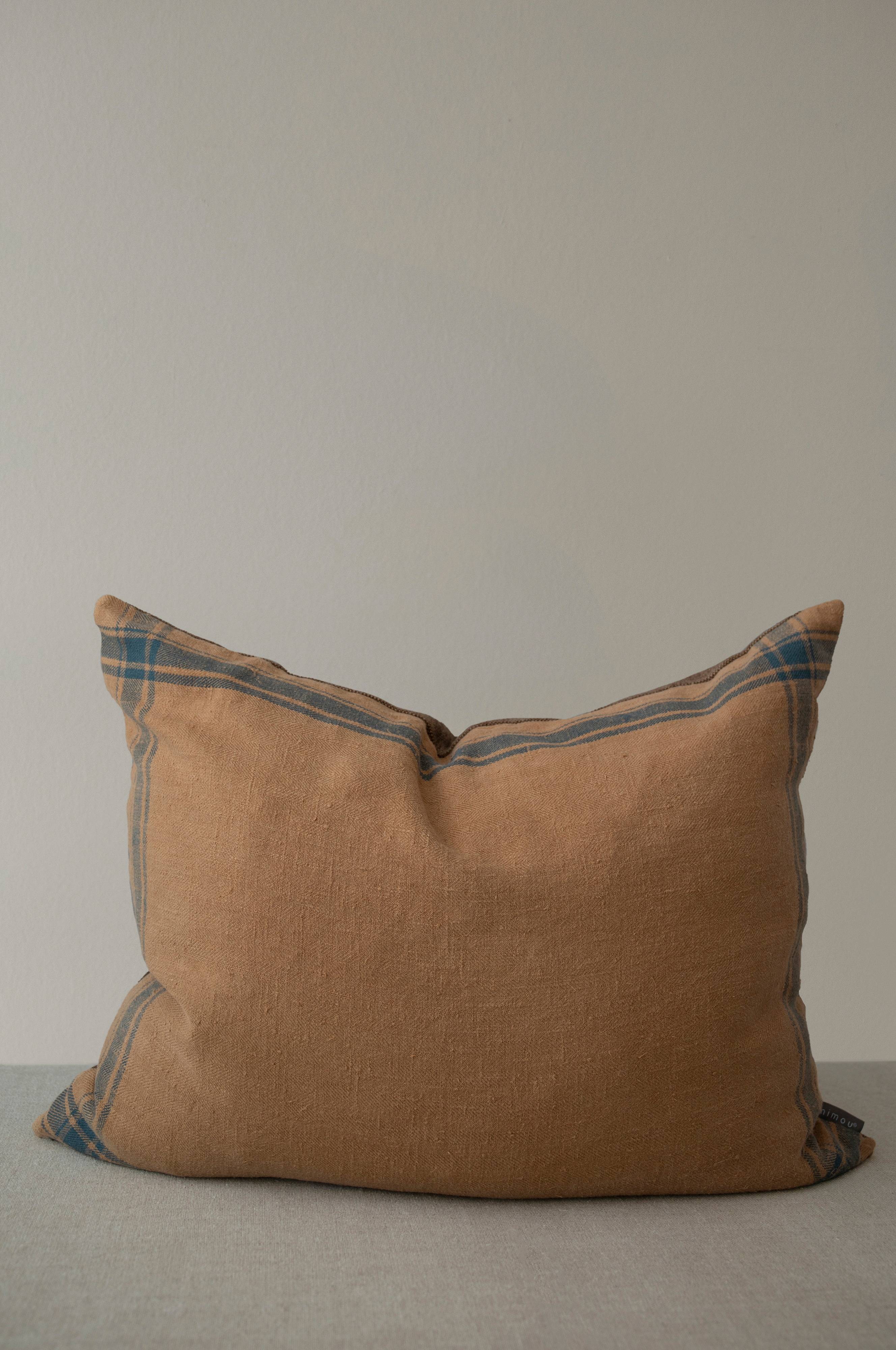 Vanhoista pellavapyyhkeistä valmistettu tyyny, joka on värjätty uudelleen GOTS-sertifioitu,väripigmentillä Ruotsissa. Takaosa ylijäämäkangasta. Materiaalien uusiokäyttö uusien materiaalien valmistamisen sijaan on kestävämpi valinta ja yksi tapa vähentää tekstiilijätteen määrää. Kuviollinen etuosa ja yksivärinen takaosa. Tyynyjen ulkonäkö ja värisävyt vaihtelevat ja pieniä kauneusvirheitä voi esiintyä. Tyynyt ommellaan paikallisesti Ruotsissa. Myydään muhkean sisätyynyn kanssa. Sisätyynyn täytteenä on Oeko-Tex®-sertifioituja vesilinnun höyheniä. Koko: 50x60 cm.