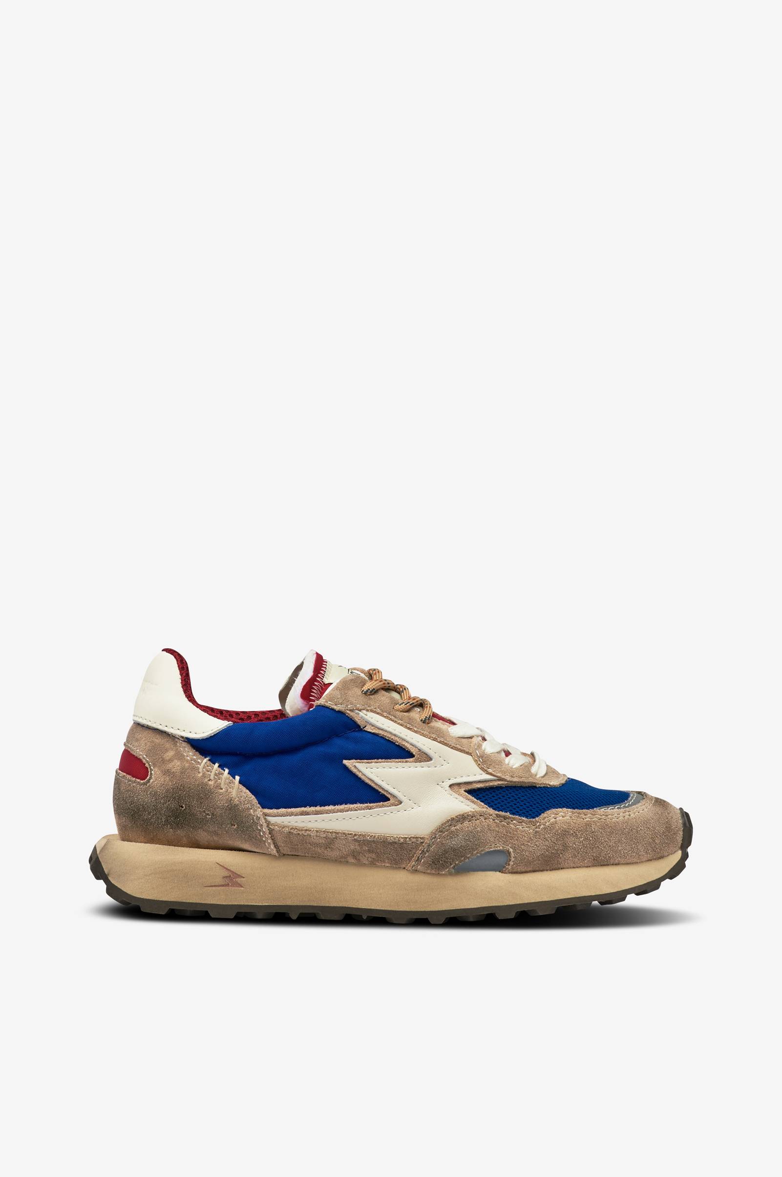 Väri: Hype royal blue nylon sand washed suede off white and burgundy details