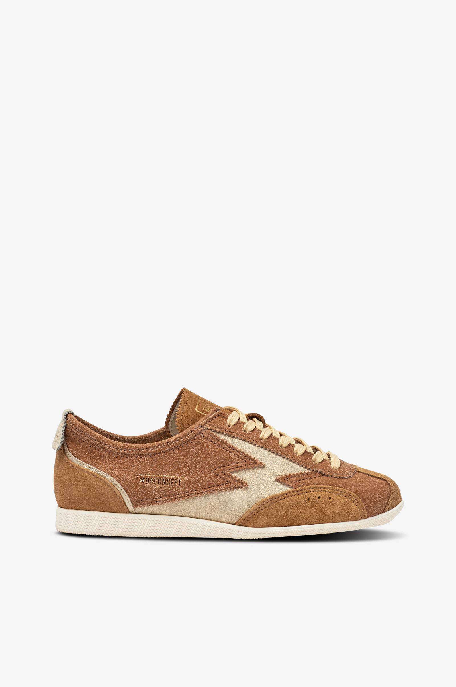 Väri: Ikigai cognac crackle tobacco suede and off white crackle details