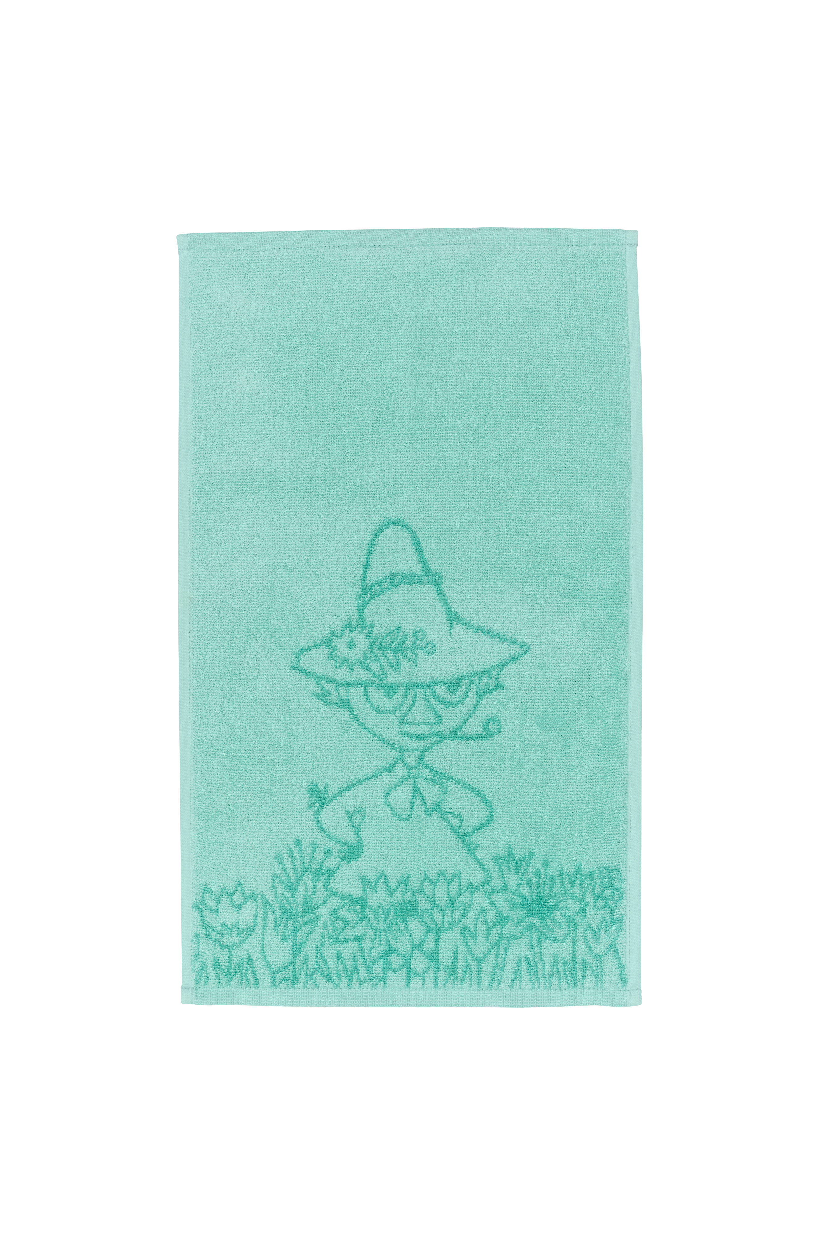 Nauti Muumi-käsipyyhkeen pehmeydestä! Kun Muumipeikko kasvattaa tuuhean hännän, joka vieläpä hehkuu, Nuuskamuikkunen varoittaa liiallisen suosion olevan vaarallista. Lopulta Muumipeikko leikkaa häntänsä irti, kuten Nuuskamuikkunen on neuvonut. Moomin Arabia käsipyyhe 30x50 Nuuskamuikkunen minttu