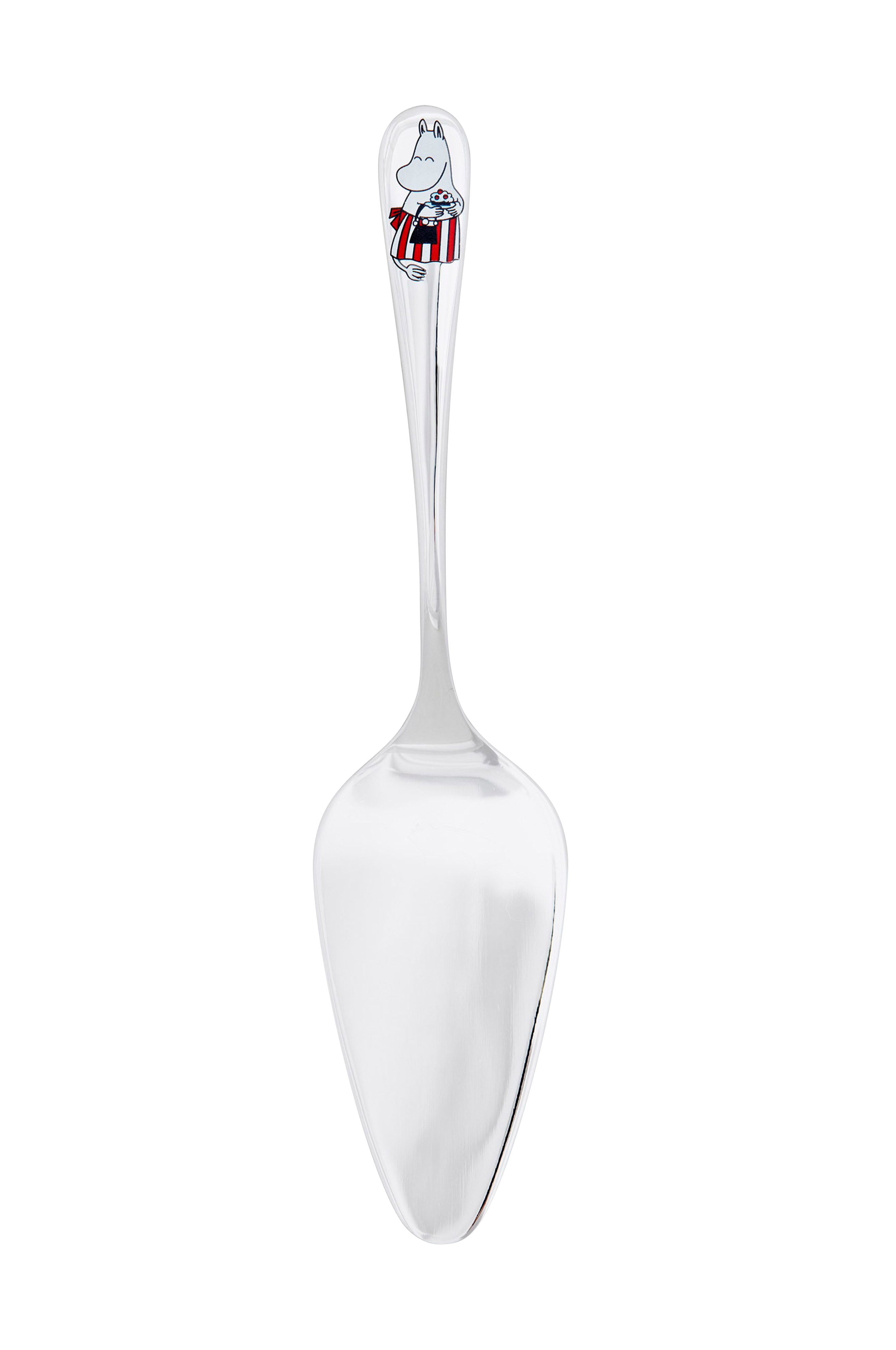Muumeilta voimme oppia, että arkenakin voi juhlia ja kakkukesteihin ei tarvita tekosyitä! Moomin Arabian Juhlahetki-kakkulapio, jonka kuvituksessa on Muumimamma. Ruostumatonta terästä. Moomin Arabia kakkulapio, Juhlahetki