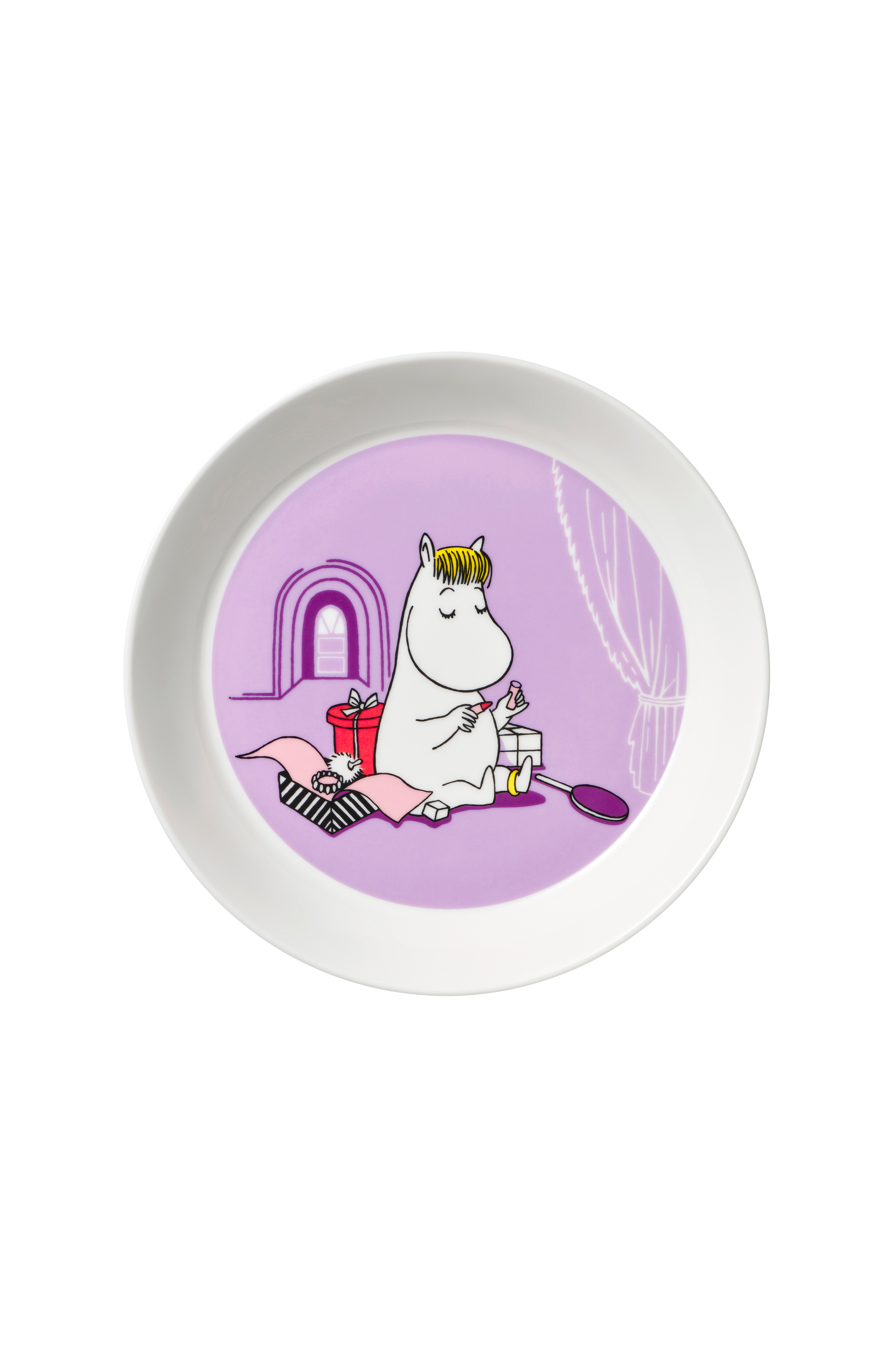 Niiskuneiti hurmaa ja rakastaa tulla hurmatuksi. Hän on paitsi naisellinen ja turhamainen, myös reipas ja neuvokas. Hän sovittaa ylleen bikinejä, mutta peilikuva ei imartele. Niiskuneiti näyttää tunteensa muuttamalla väriään. Moomin Arabia, lautanen 19cm, Niiskuneiti