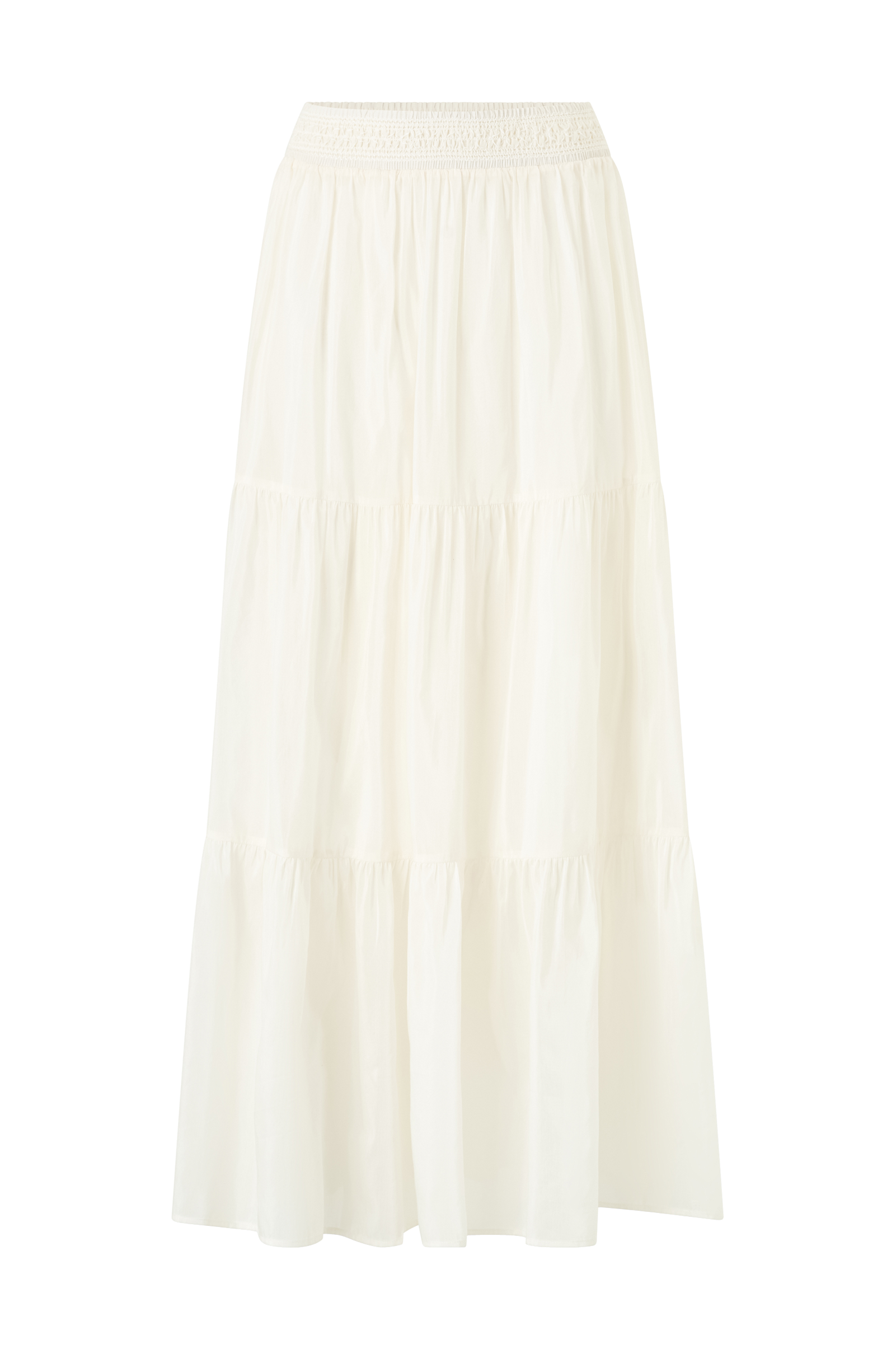 • Pitkä, vuorattu röyhelöhame silkistä ja puuvillasta