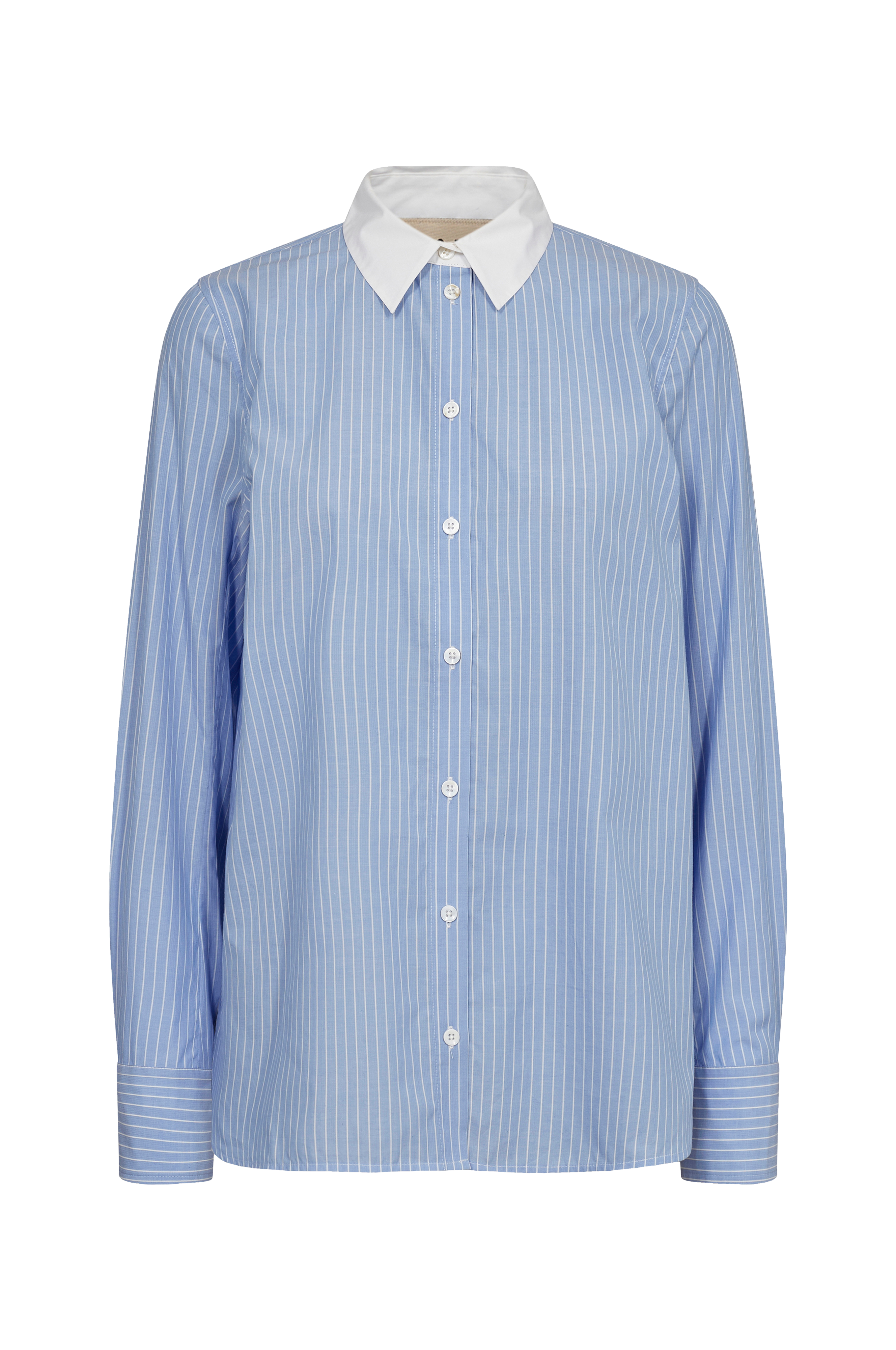 • Paita puuvillasta raidallisella kuvioinnilla• Paidan kaulus• Lievästi pyöristetty helma• Lyhyt halkio sivuilla• Napituslista edessä koristeellisilla napeilla• Pitkät hihat hihansuilla hihansuissa• Vekki selässä