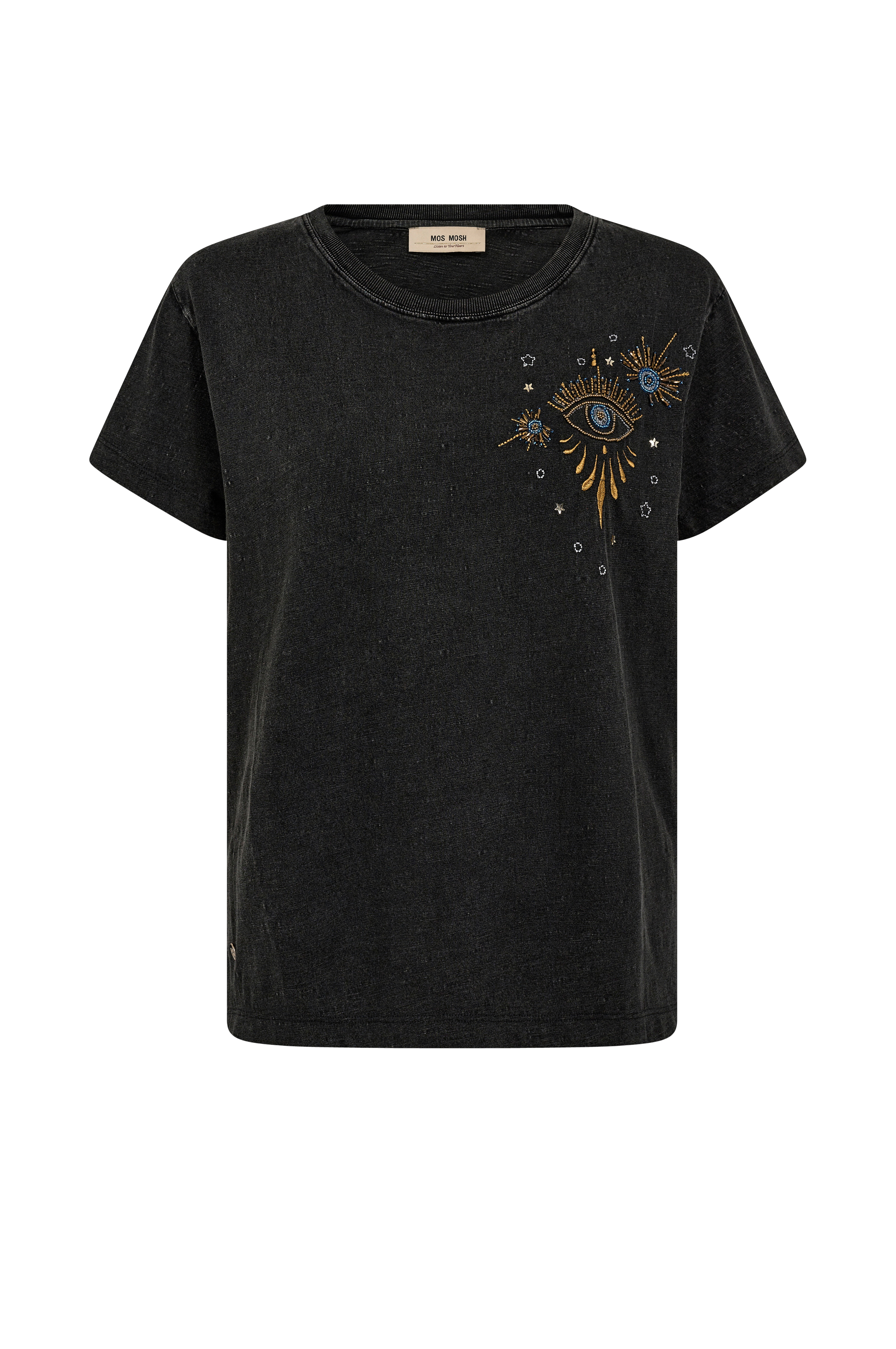 • Edessä koristelu kiiltävillä kirjailuilla, strasseilla ja paljeteilla.
