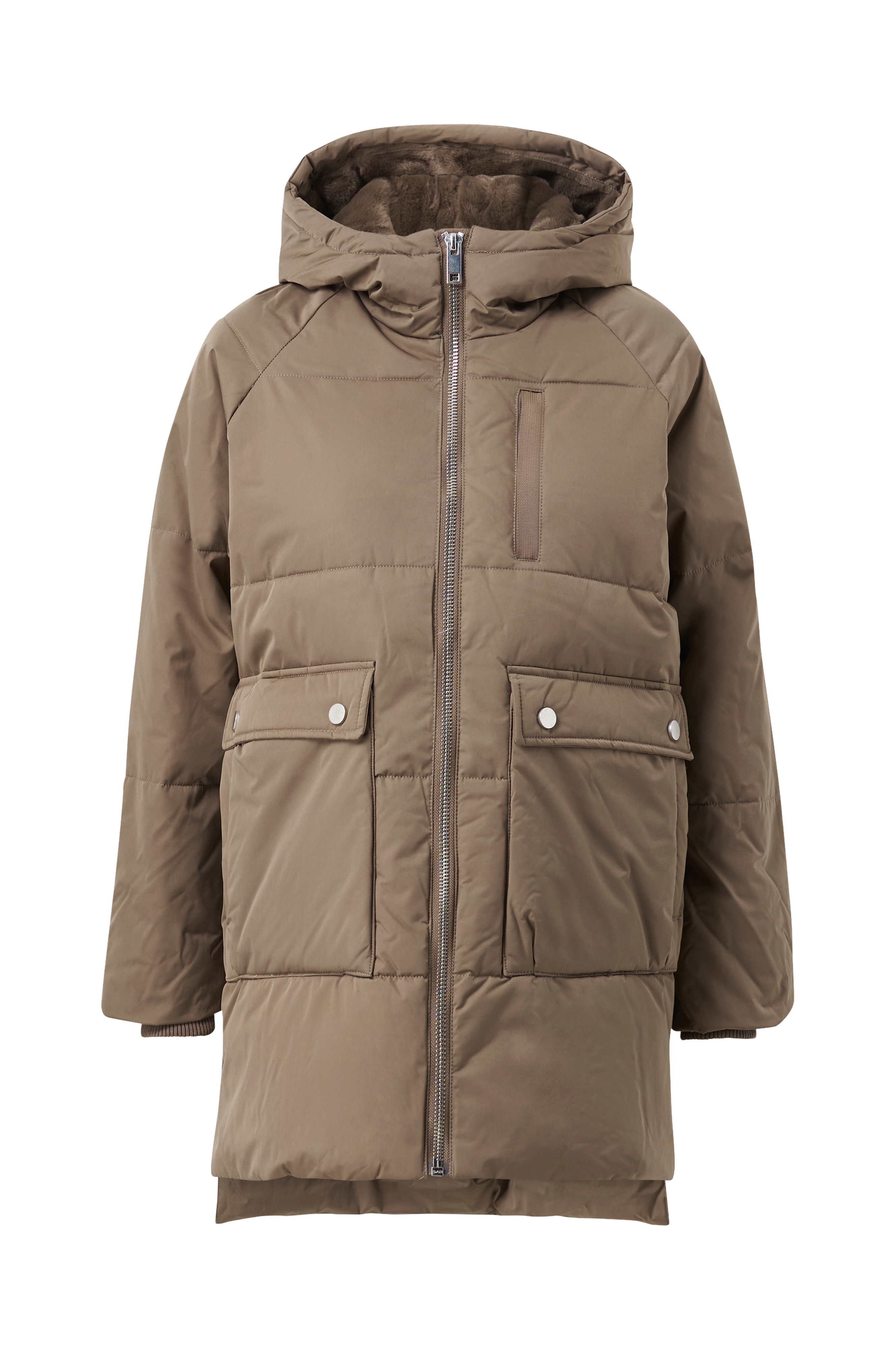• Kiinnitetty huppu vuorilla tekoturkiksesta
