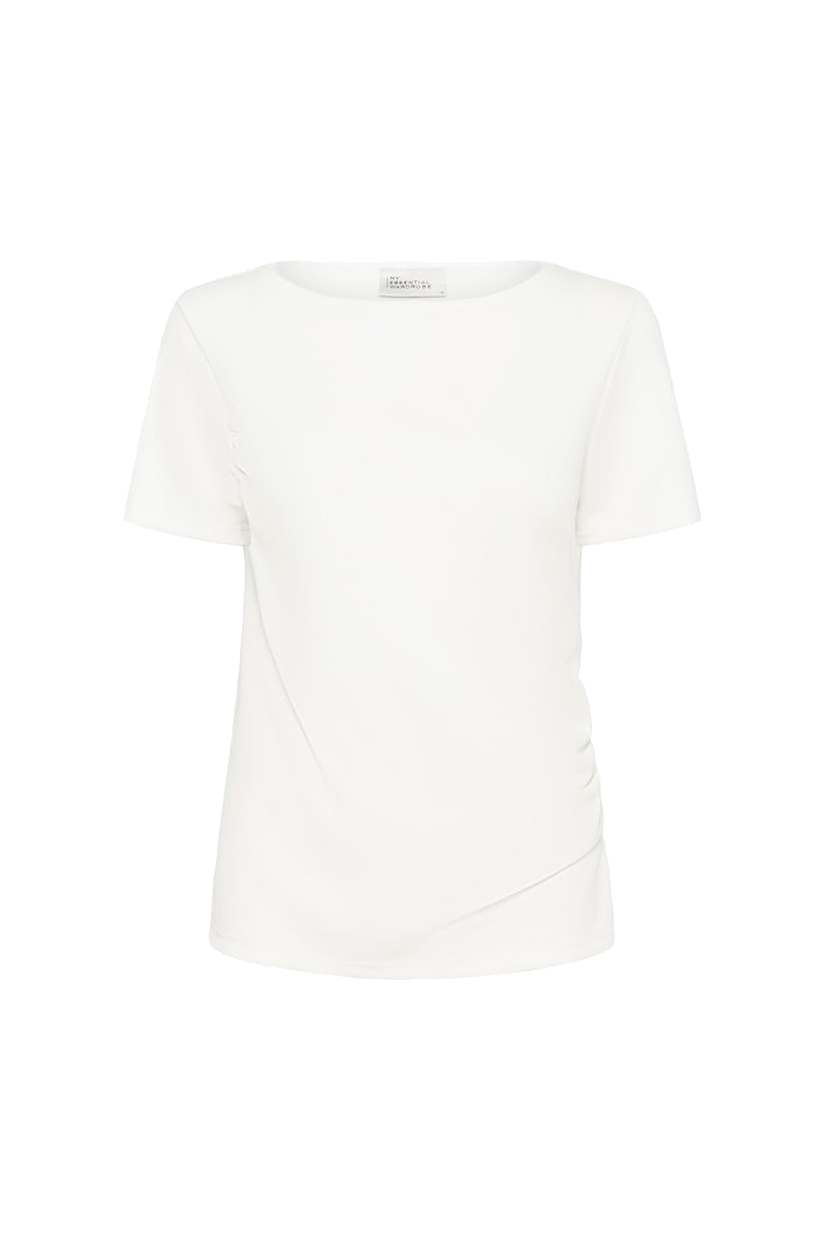 • Pehmeä T-paita modaalisekoitteesta• Veneen muotoinen kaula-aukko• Laskokset• Halkio yhden sivun alaosassa