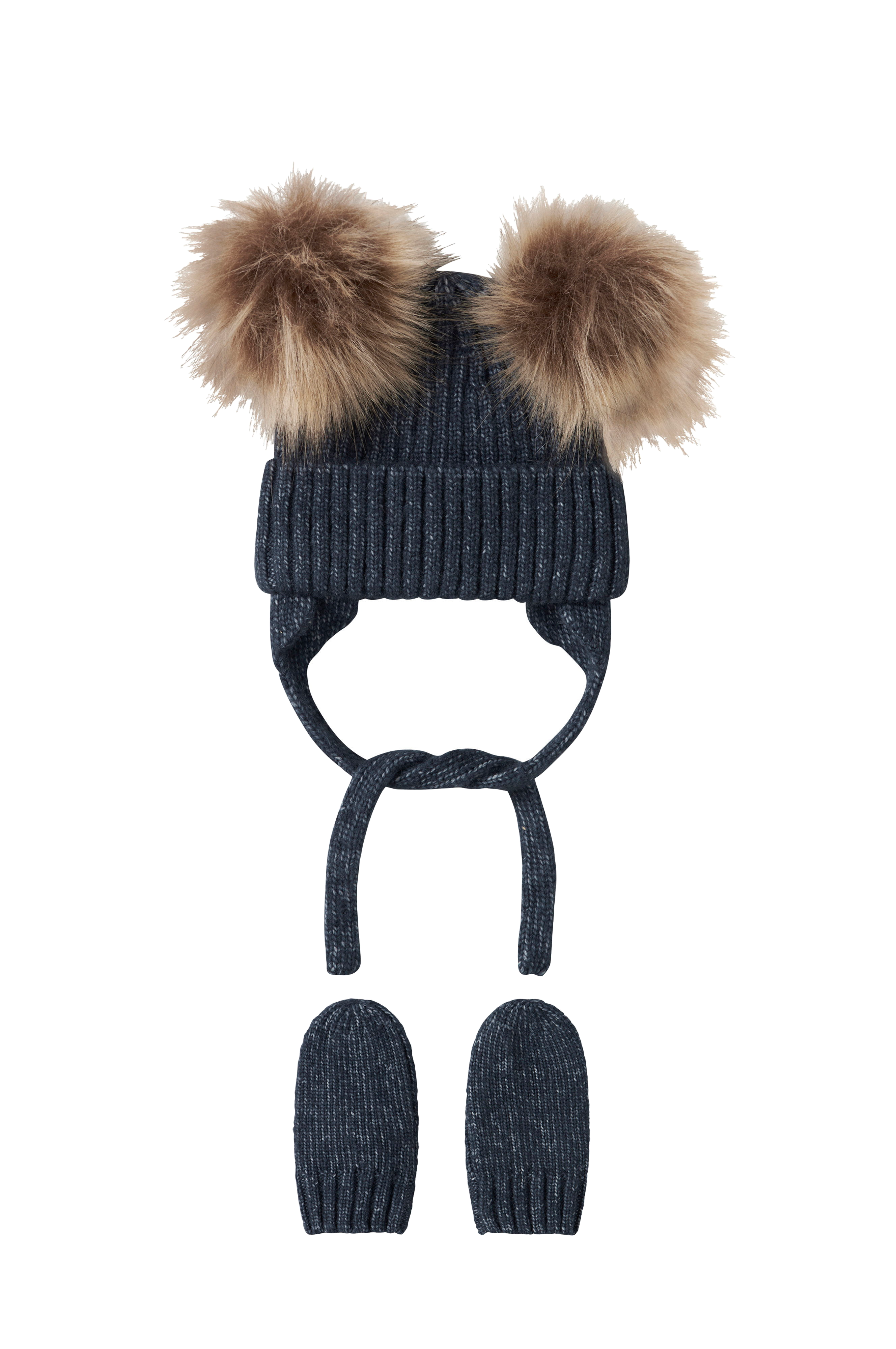 • Resorimainen vauvan myssy kahdella huiskalla tekoturkiksesta ja solmittavalla vyöllä leuan alapuolella