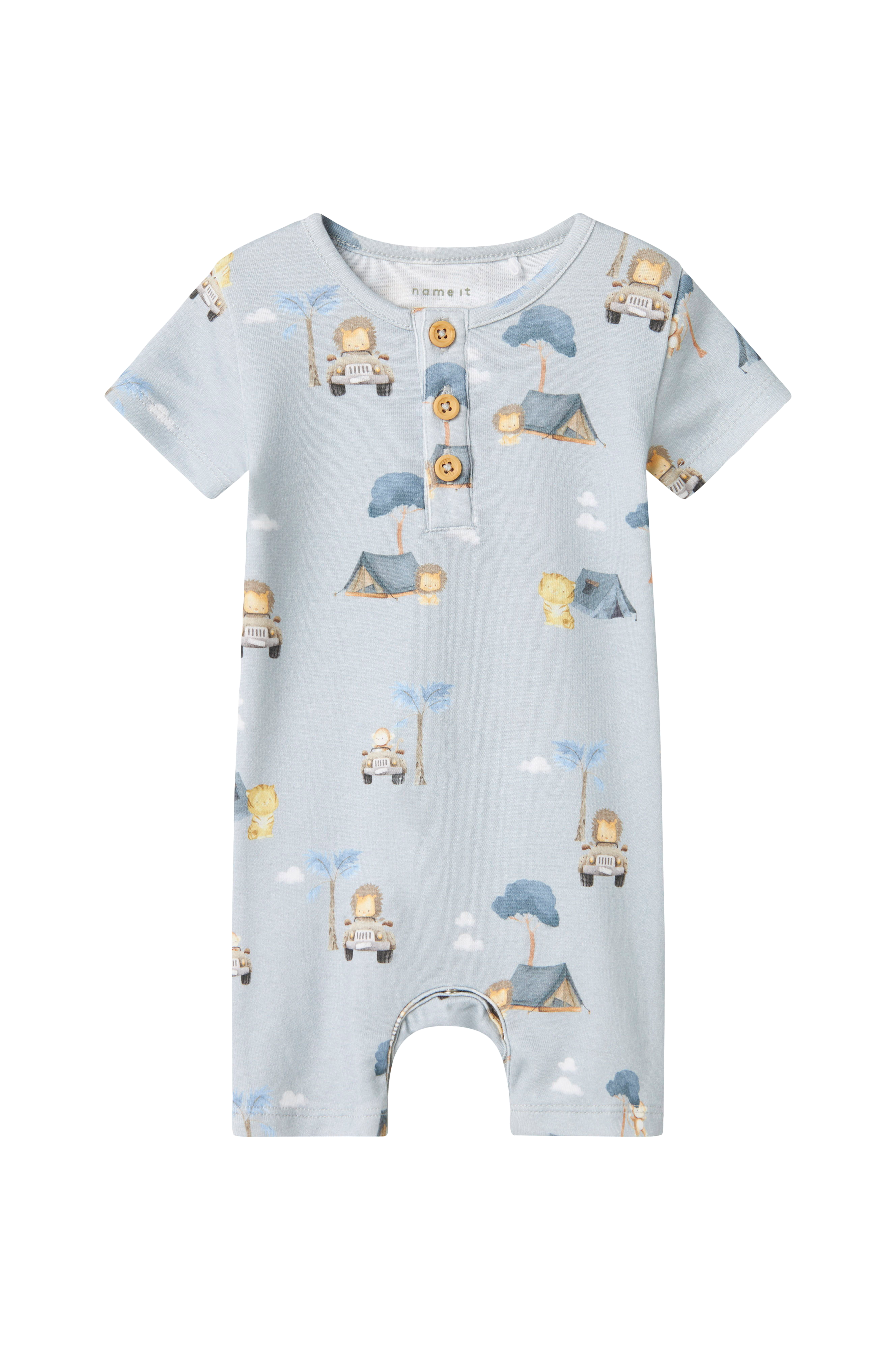 • Lyhythihainen kokohaalari lyhyillä jaloilla• Pyöreä pääntie• Kolme nappia edessä• Painettu kuviointi• Nepparit jalkovälissä