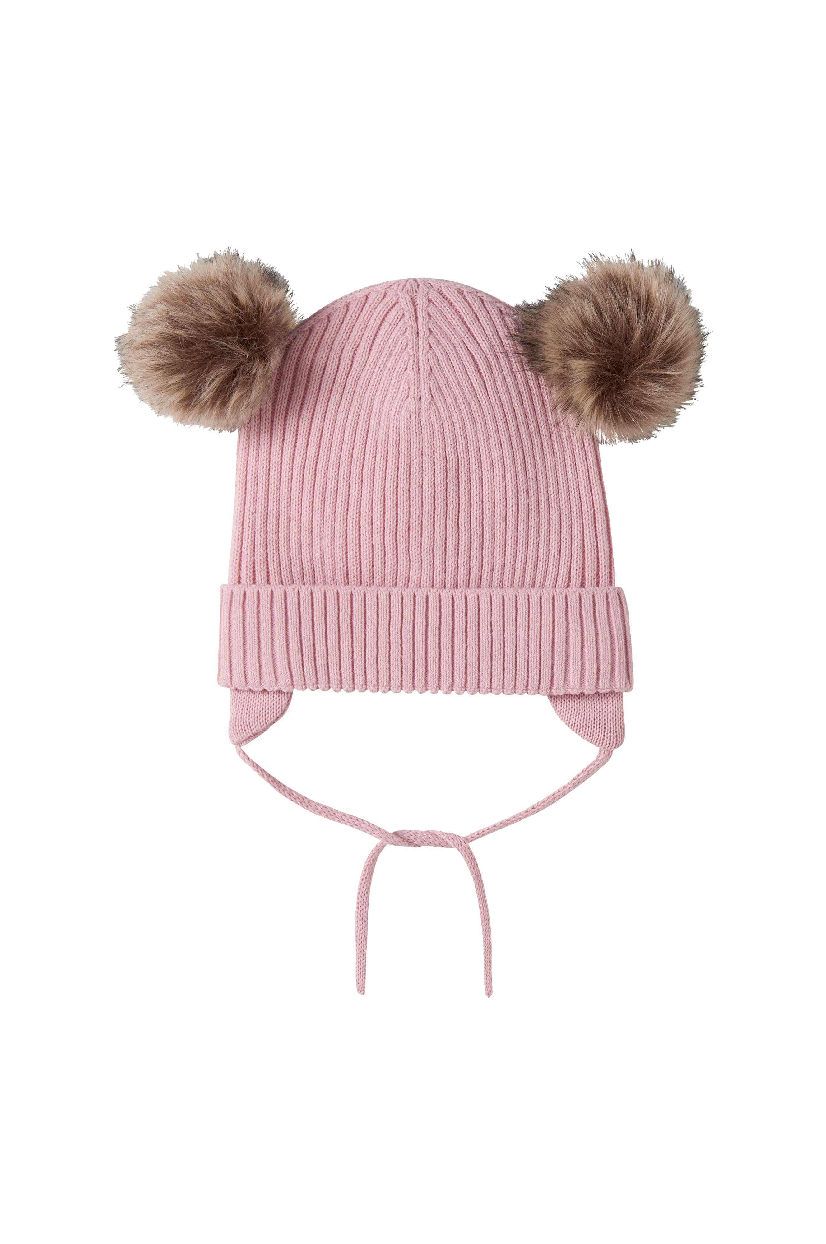 • Resorimainen vauvan myssy kahdella huiskalla tekoturkiksesta ja solmittavalla vyöllä leuan alapuolella