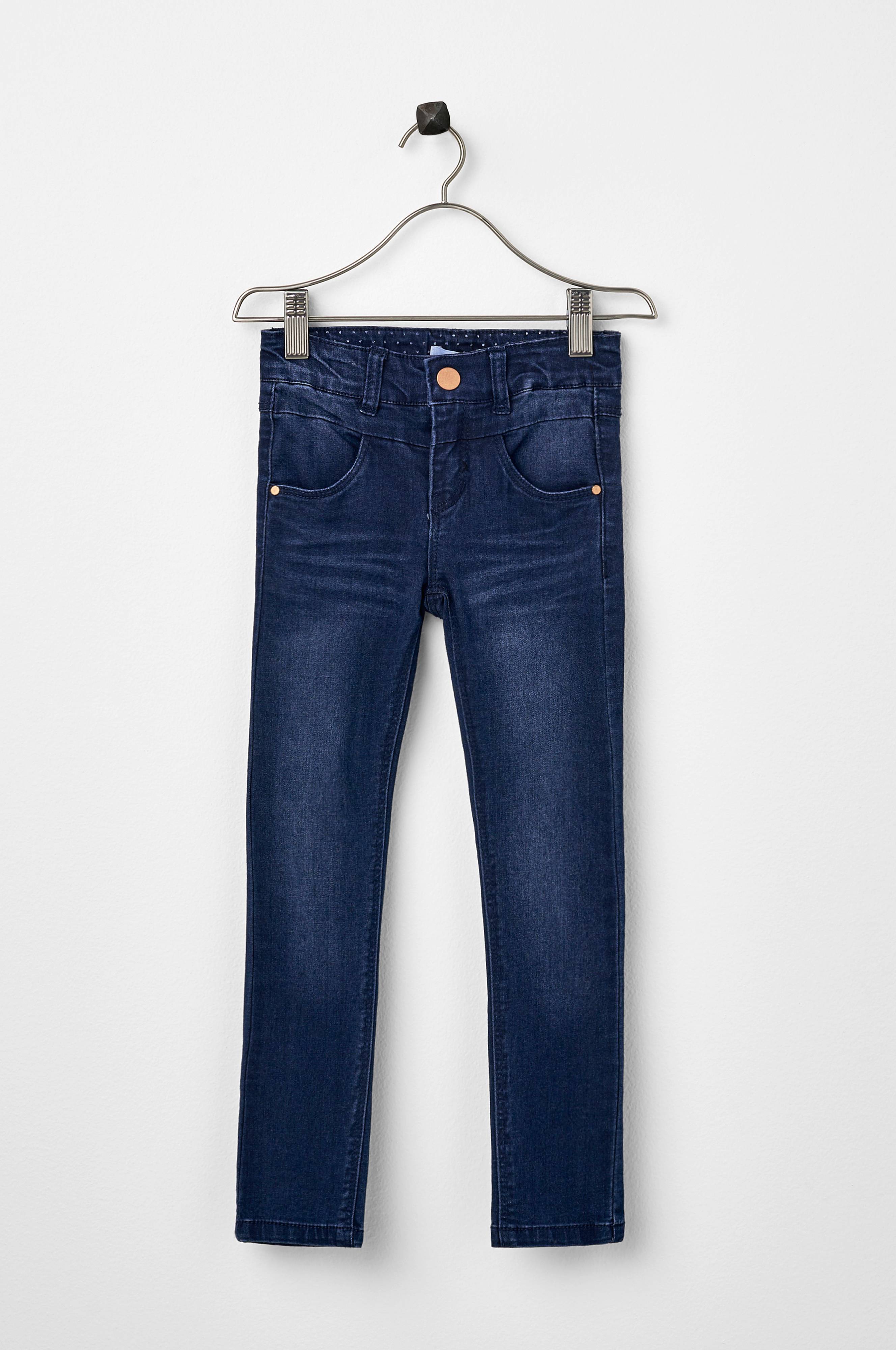 Name it nkfPolly dnm Trille 3001 -farkut pehmeää stretchdenimiä. Vyötärönauhassa vyölenkit ja hakassuljenta, etuhalkiossa vetoketju. Säädettävä vyötärö, jossa sisäpuolella nappijoustin. Kaksi etu- ja kaksi takataskua.