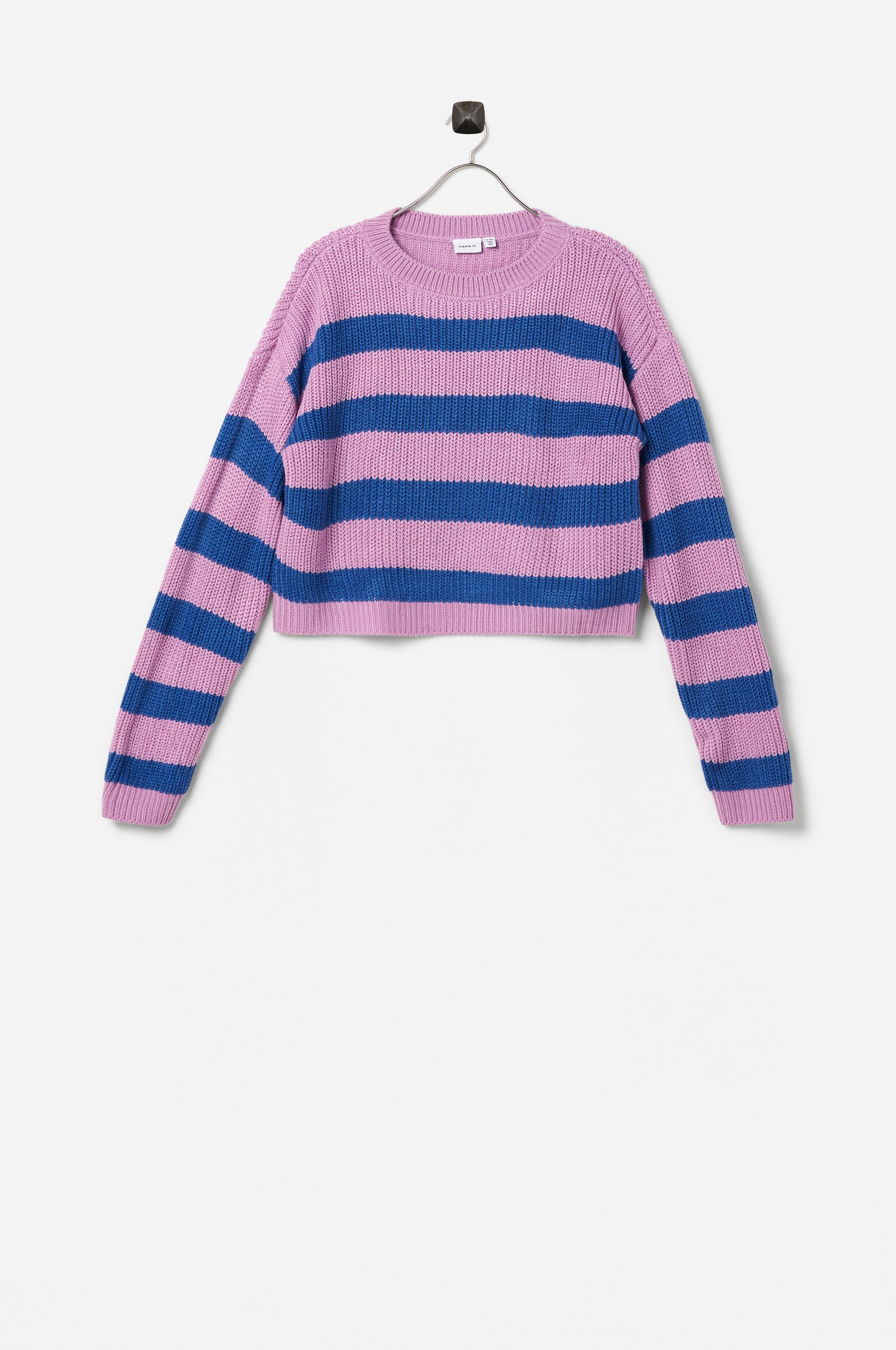 • Raidallinen, neulottu paita• Lyhyt, laatikkomallinen malli• Pudotetut olkapäät