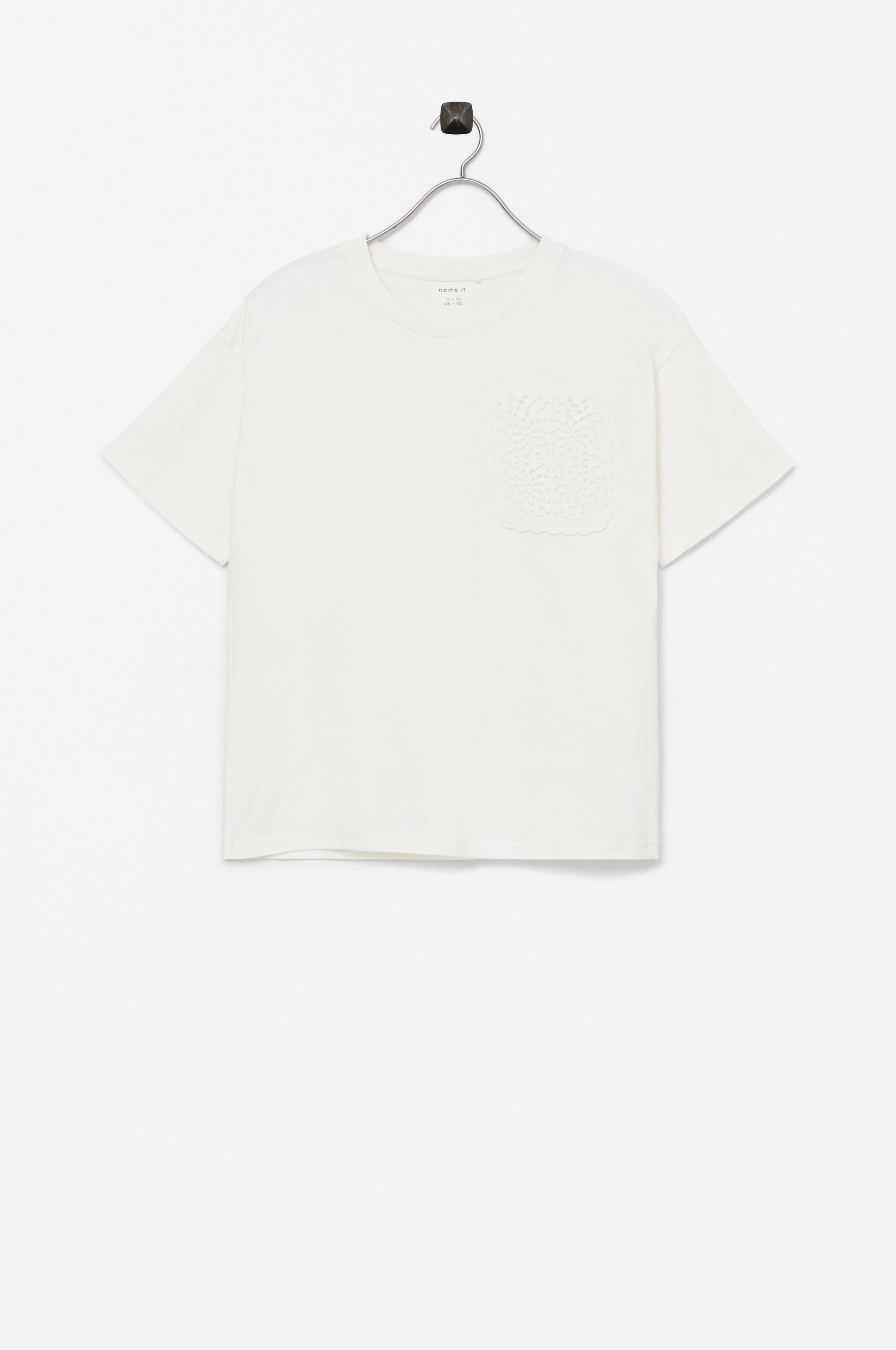 • Lyhyet hihat• Pudotetut olkapäät• Virkattu rintatasku• Valmistettu puuvillajersey-kankaasta